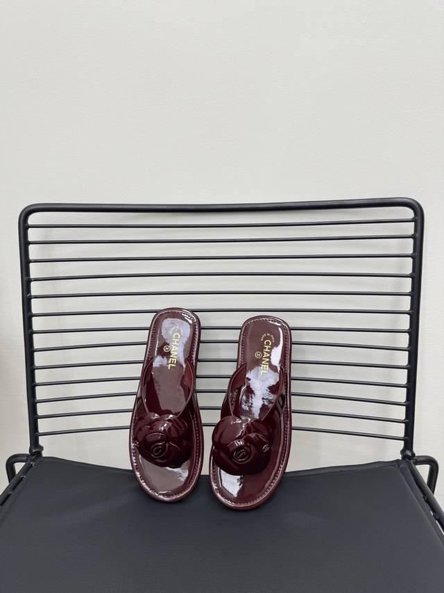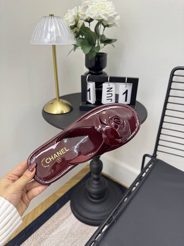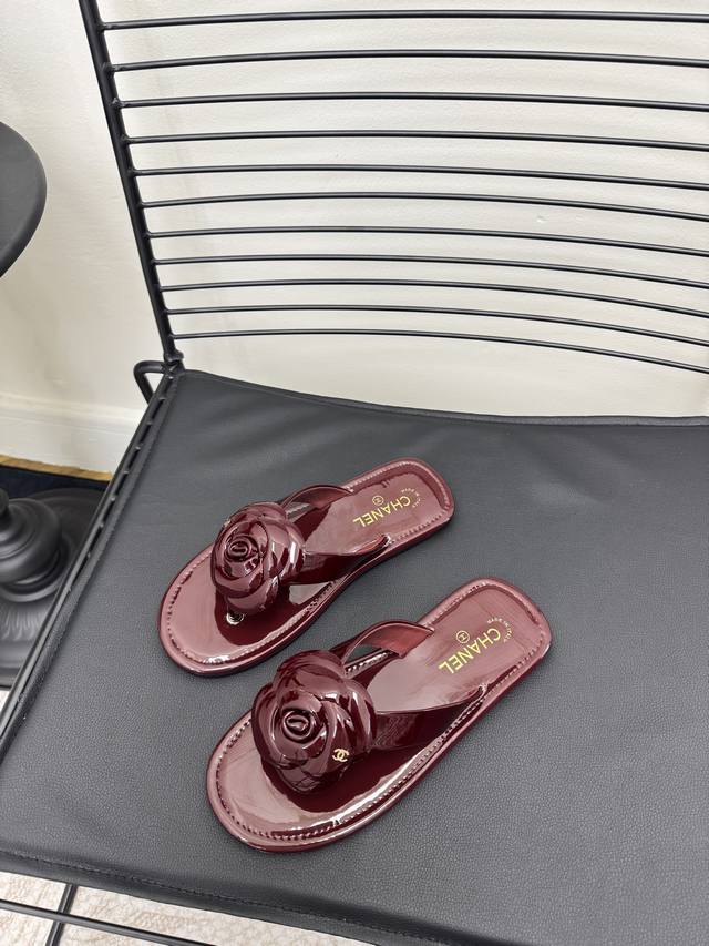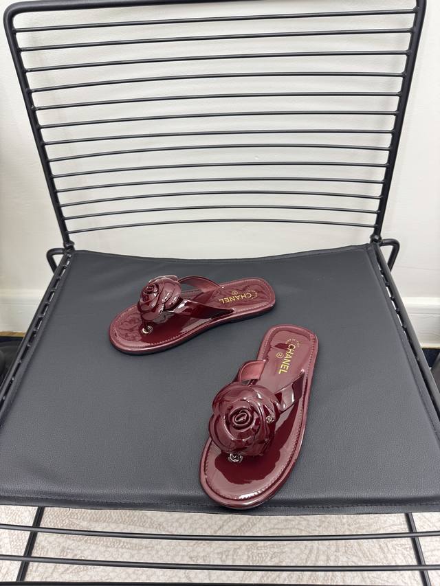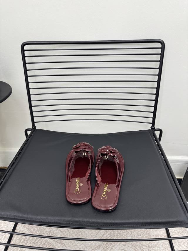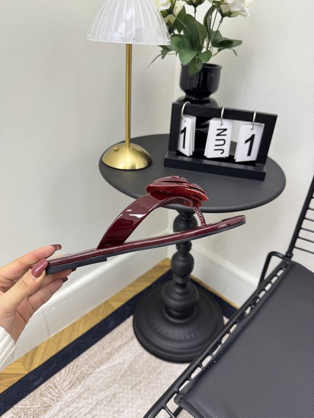 FFF 红色 Size:35-39 40 41定制 DDD Chane*|小香 26C早春新品山茶花 DDD 夹脚人字拖鞋 DDD 将标志性山茶花元素注入慵懒步调 DDD 让轻奢质感融入每一段自在行程。 DDD 夹趾处缀以立体雕琢山茶花饰件 DDD 花瓣纹路清晰灵动 放瞬间的鲜活张力 DDD 暗藏低调间尽显品牌辨识度。 DDD 金属双C标识与山茶花饰件相映成趣 DDD 延续品牌经典的同时 更显质感。 DDD 经典黑白主调适配多元场景 DDD 搭配白色真丝衬衫与九分烟管裤 DDD 是通勤路上不张扬的贵气格调
