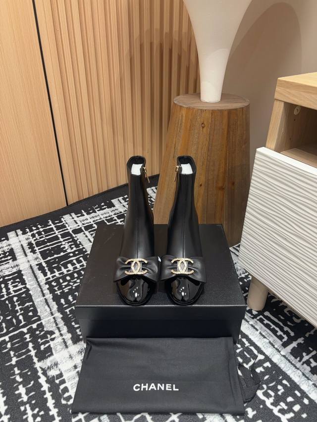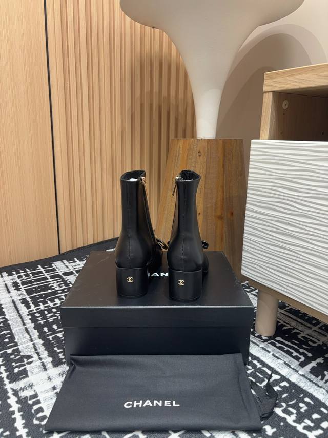 绒面P -皮面+10 245Fw新款Chanel小香蝴蝶结双C钻扣短靴 一款充满香家气息的神鞋,今年爆火的蝴蝶结装饰搭配双C水钻扣元素,高级的淑女气质 鞋子千千