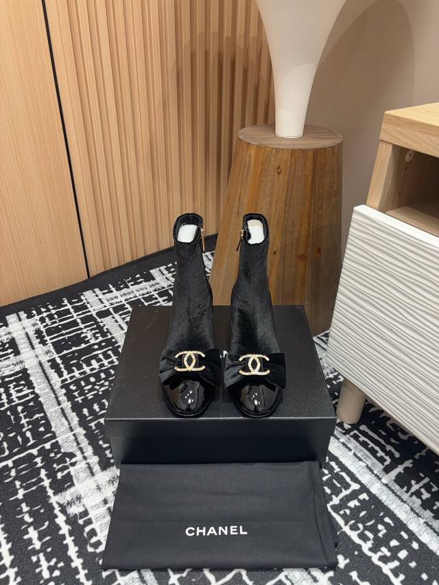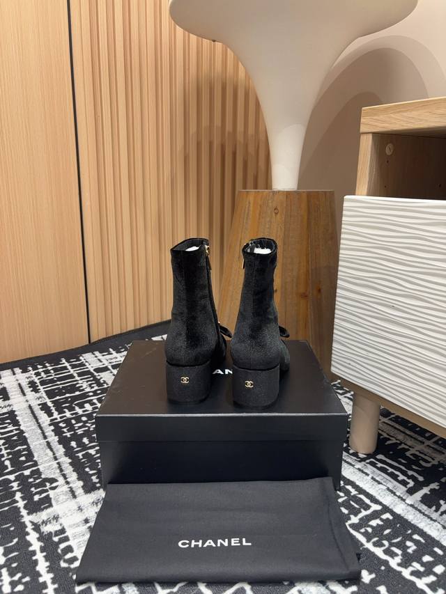 绒面P -皮面+10 25Fw新款Chanel小香蝴蝶结双C钻扣短靴 一款充满香家气息的神鞋,今年爆火的蝴蝶结装饰搭配双C水钻扣元素,高级的淑女气质 鞋子千千万