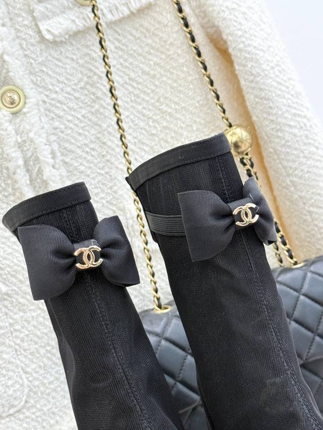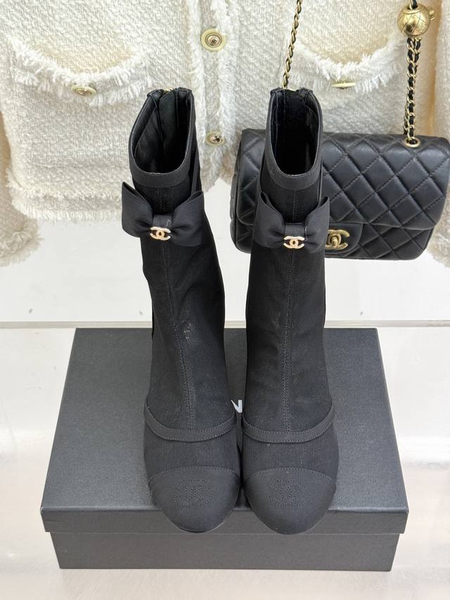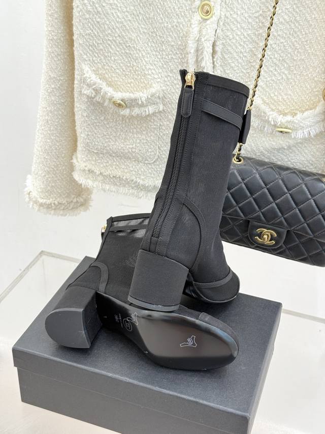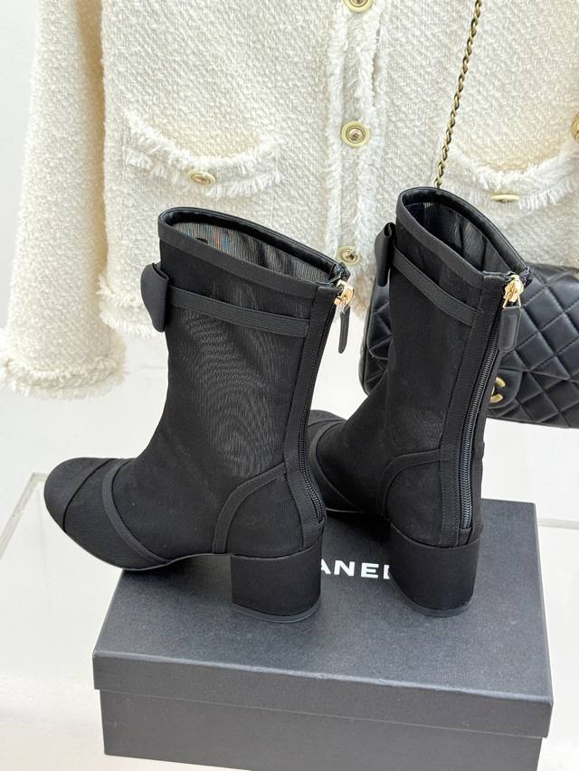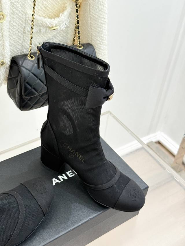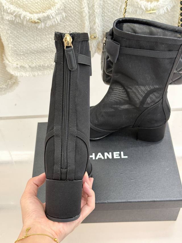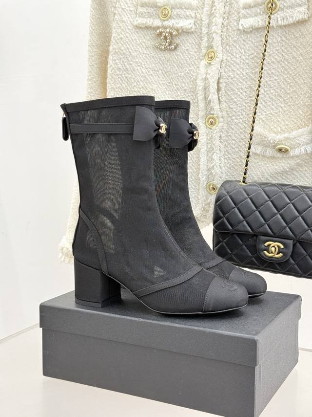 网面 皮面 DDD Chane*|小香25B新品双C蝴蝶结 DDD 网纱弹力靴短靴 DDD 在时尚的无垠宇宙里 总有一些存在 DDD 能轻易捕获目光 成为永恒的焦点。 DDD 正是这样一件熠熠生辉的时尚臻品 DDD 它以独有的姿态 融合了梦幻与实用 DDD 演绎着香奈儿百年传承的优雅。 DDD 网纱作为这双靴子的主调 赋予其轻盈与灵动。 DDD 细腻的纱线纵横交织 似云雾般轻柔 DDD 又似蛛丝般坚韧 在日光的轻抚下 DDD 折射出若有若无的微光 宛如清晨湖面的粼粼波光 DDD 为整体造型增添了一抹朦胧的