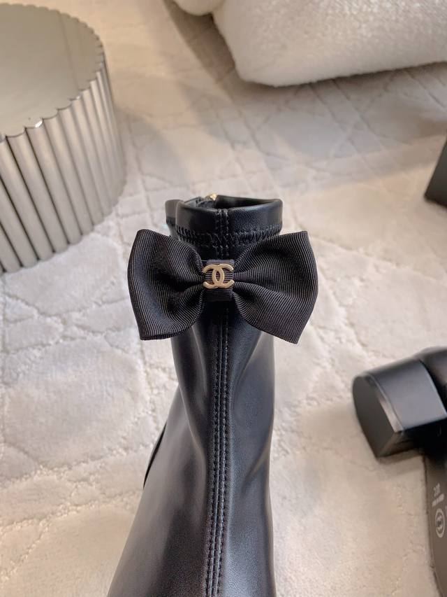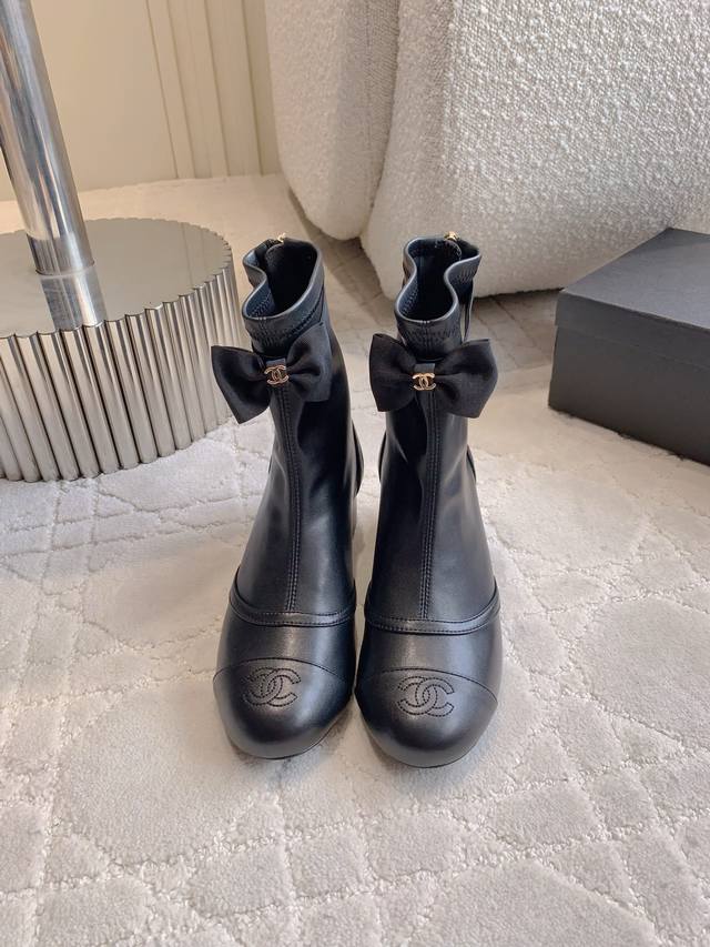 网面 皮面 Chane*新款网纱蝴蝶结短靴 超多明星时尚博主种草 主打都是甜甜的颜色 直击我心 上脚高级感满满 鞋面网纱 羊皮 垫脚羊皮 跟高5Cm 意大利真皮