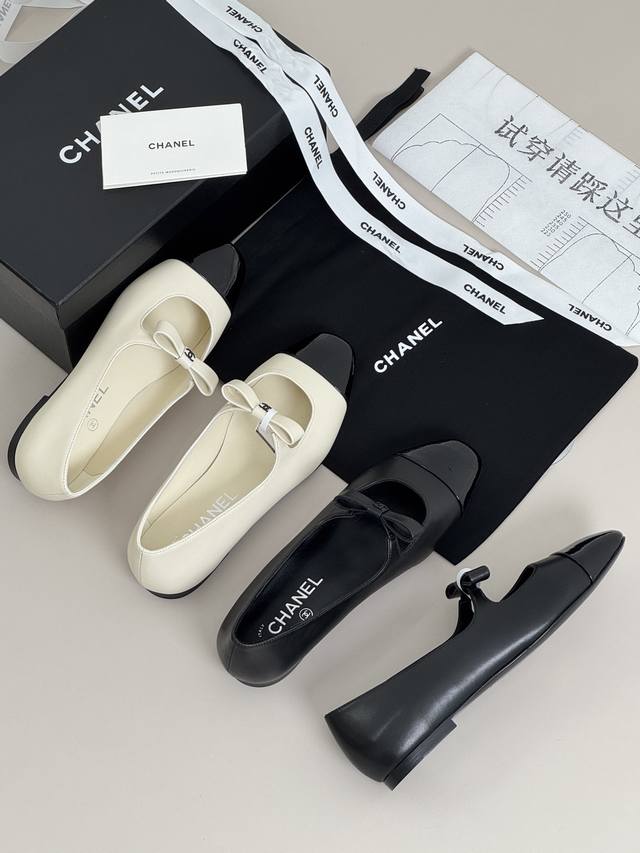 莞产顶级版本 代购级 Chanel 香奈儿 小香25B玛丽珍! 我们都知道小香的魅力从来都不是设计多独特又或者是多复杂,靠的是从内到外散发的高级吸引着大家喜欢,给大家推荐的25B走秀款玛丽珍高级中融入了优雅! 玛丽珍鞋温柔又舒适,牛皮拼接羊皮面料无敌,光泽温润有质感,满满高级,垫脚舒适柔软亲肤走路不累脚,浅口鞋型经典温婉秀气,整体线条流畅修型显脚瘦不卡脚!蝴蝶结加持真的很特别,精致感十足! 鞋面:小羊皮 内里,中皮:羊皮 大底:真皮组合底 尺码:35-40