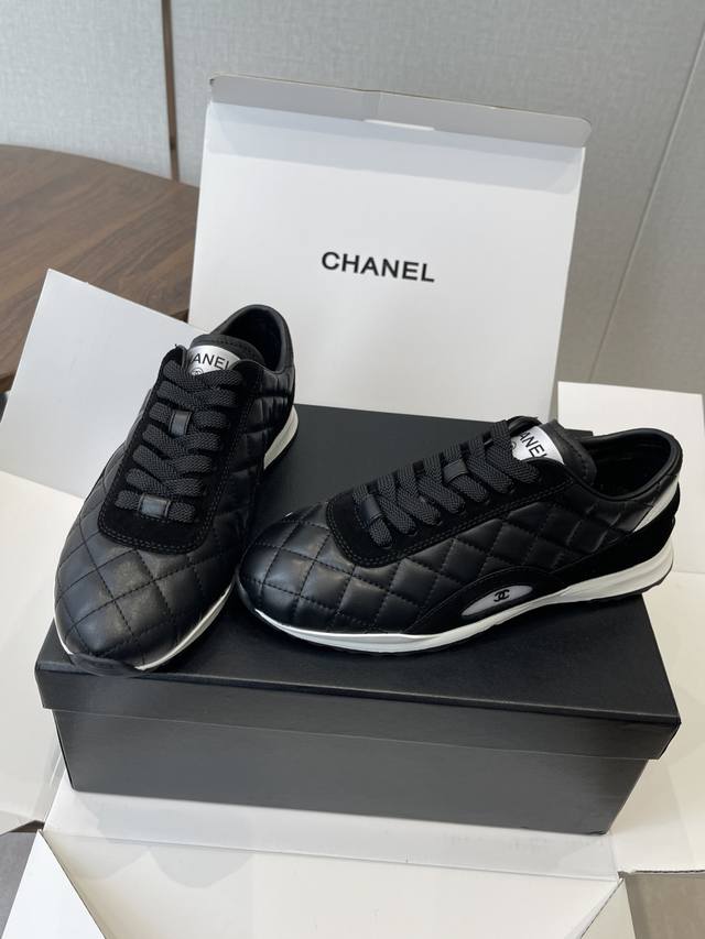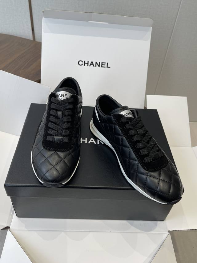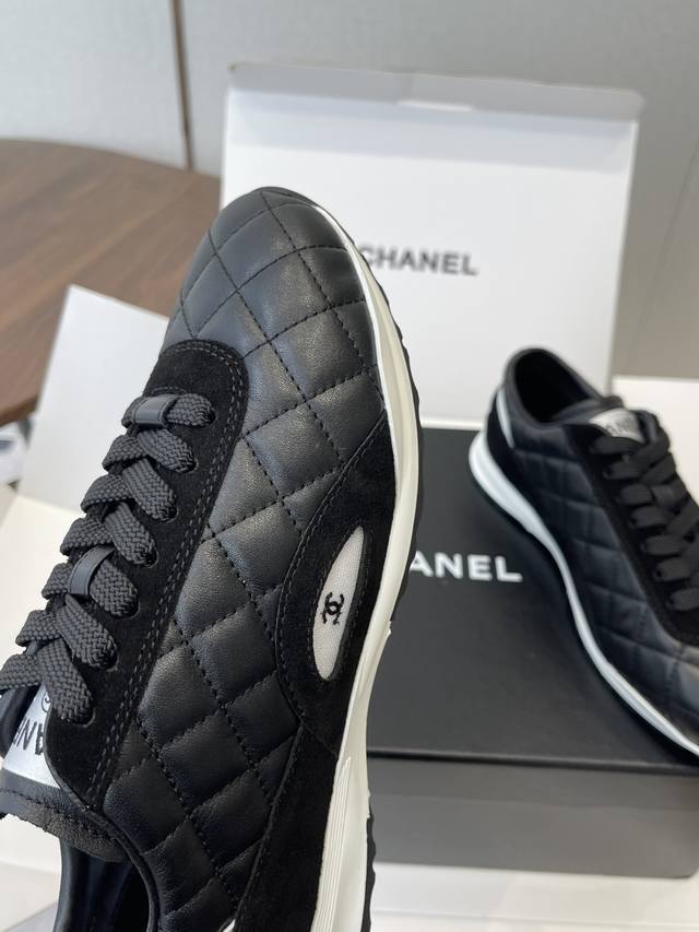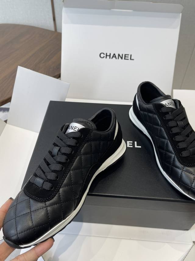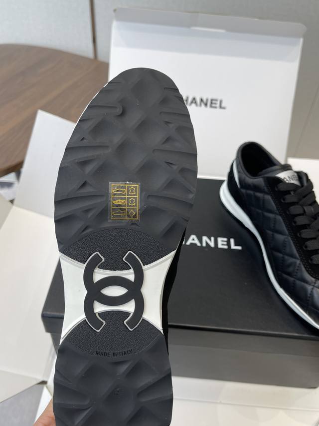 莞产Chanel香奈儿菱格纹德训鞋 网球鞋 休闲 运动鞋 DDD 原版购入开发 做货 小香最新隐藏款网球鞋软菱格纹 柔软小羊皮配搭大鞋舌和经典双C Logo满满的复古感又是最最最百搭的黑白配色 Coco女孩必入的一款休闲鞋 鞋底碎钉设计 超级柔软 DDD 面料:原版定制小羊皮菱格纹 内里:进口定制羊皮+网里 鞋底:原版开模碎钉橡胶材质 DDD Size:35-40 40订做不退换 DDD Ddd