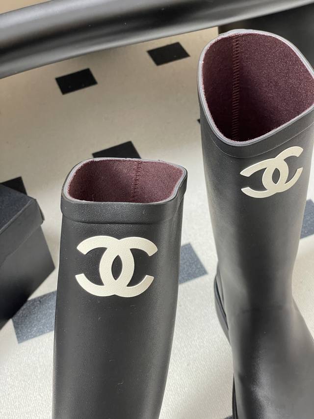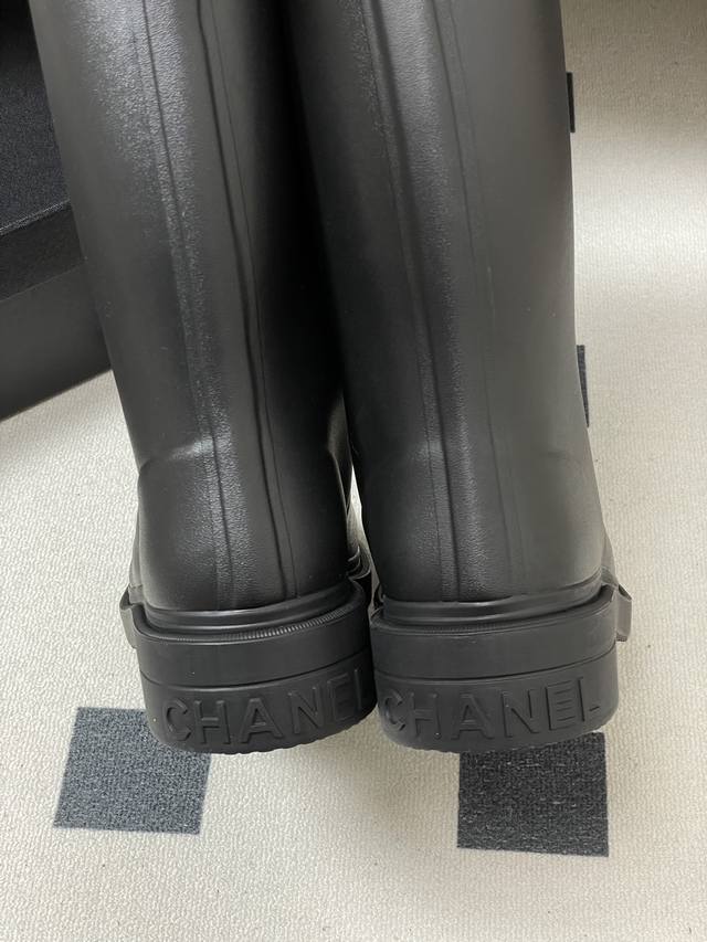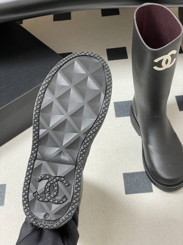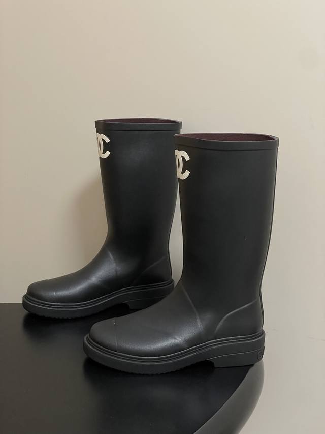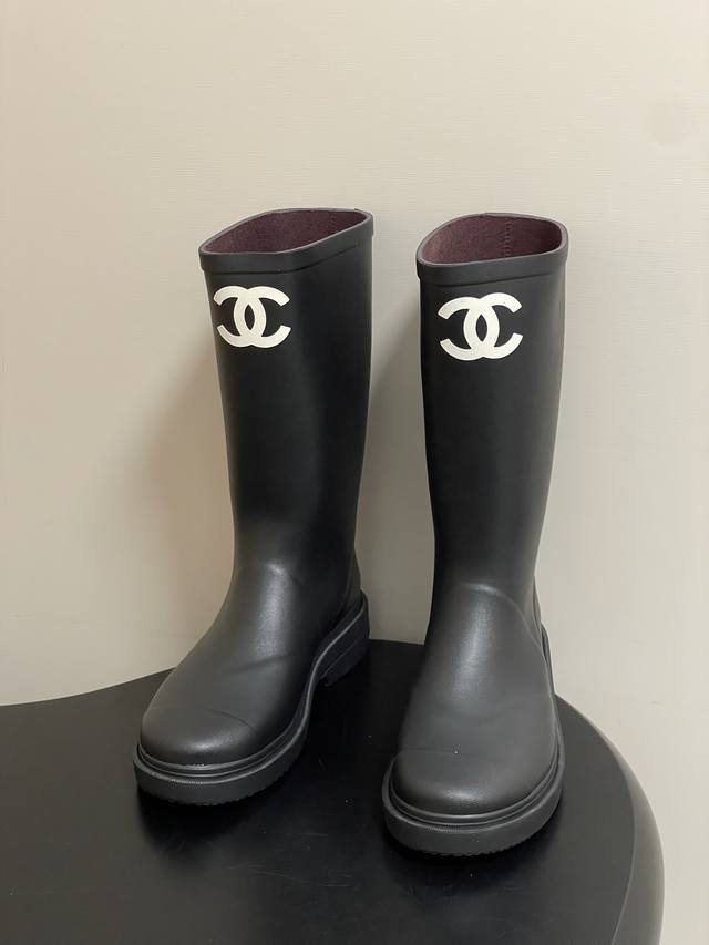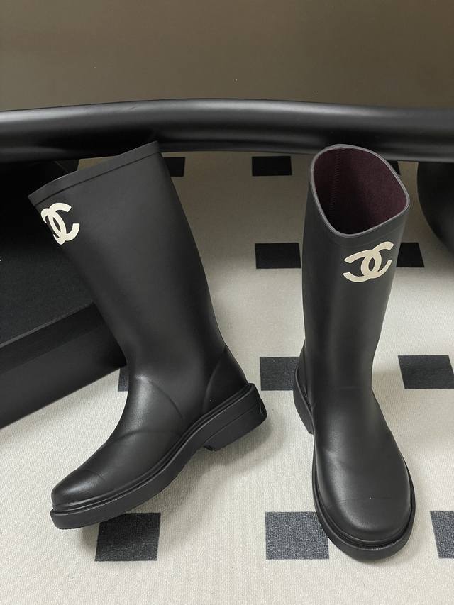 顶级品质 无缝 Chanel 小香经典款雨靴 橡胶防滑雨靴长筒骑士靴 采用防水橡胶材质,兼具实用性与耐用性,适配雨天等潮湿场景经典黑配色+品牌双C标识,风格简约