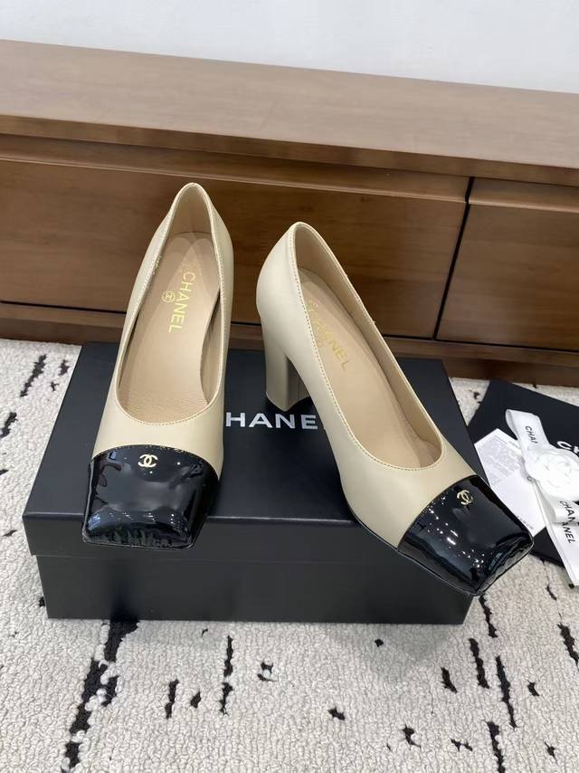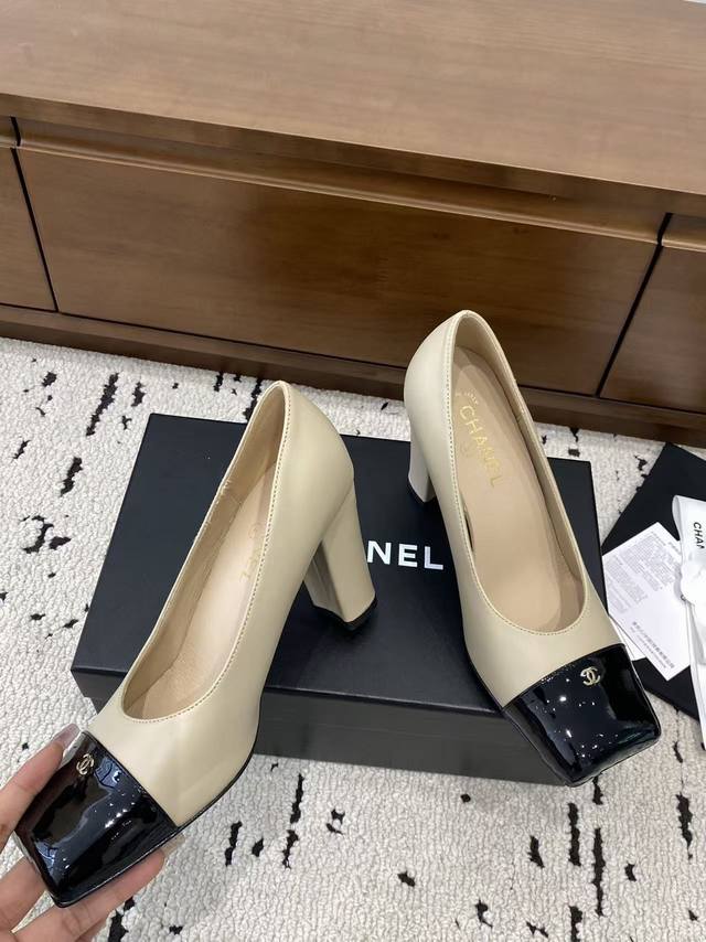 顶级品质 经典之作,代购级别 Chanel 香奈儿最值得拥有的经典款 粗跟方头拼色百搭高跟单鞋,材质:鞋面采用进口全新混种羊皮内里高级混种羊皮+意大利进口牛皮底. Size:35–39 40定制不退换 . DDD 跟高: 6.5Cm DDD
