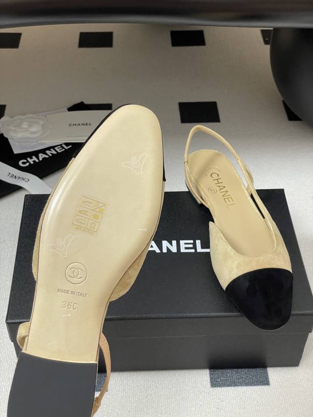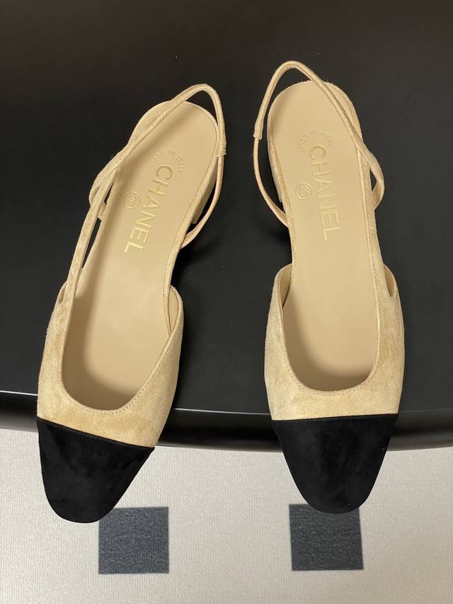 顶级品质 25S早春新款Chanel小香绝美麂皮绒面后空Sling-Back凉鞋平底 粗跟 Sling-Back于1957年问世,之后Two-Tone设计成为Chanel经典之作跟春夏的适配度很高 双色设计简约精美,方头大方气质,从视觉上拉长腿部线条,鞋头颜色产生了色差感,后系带设计简洁优雅,一双能穿百年的经典款,值得一入 鞋面:定制细腻羊猄皮 内里垫脚:进口羊皮 跟高:2Cm 6.5Cm 鞋底:意大利A级真皮大底 码数:35-39 34.40.41.42定做不退换