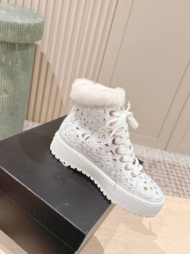 Chanel 经典Coco系列雪地羊毛靴! 重工高定系列!顶级版本 鞋面采用进口皮草定制羊毛!非普通羊毛 羊皮内里 原版定制五金扣...