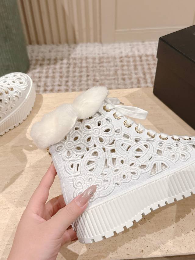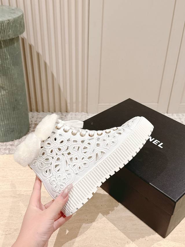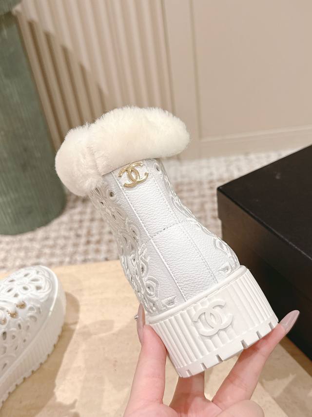 顶级版本:镂空羊毛里 :单靴不带毛里 :Chanel 小香凉靴+真羊 毛里 内套 DDD 一双让女神可以穿四季的靴子,高端大气上全新元素!全新工艺!高难度的工艺,激光电绣一体机,才能完成的精美成品! DDD 2个色系!全白 全黑!纯色的材料加精美的茶花图案! 香奈儿专用图案 DDD 牛皮面+羊皮里+Tpu大底+羊毛里 DDD 女款 35-42 DDD