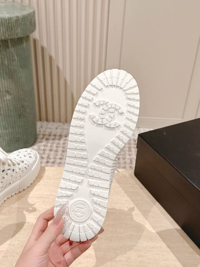 出厂 高版本 25Ss春夏新款Chanel 香奈儿 坡跟厚底凉鞋双C编织镂空防水台高跟凉鞋...