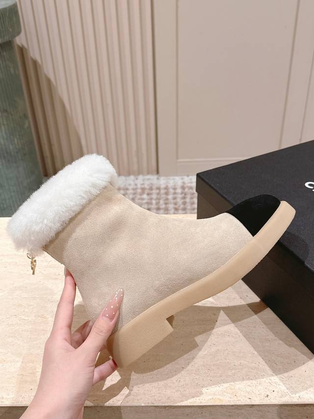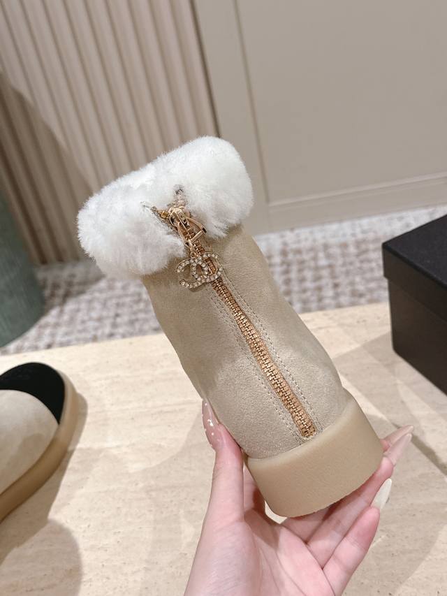 顶级版本: : 香奈儿 Chanel 25K 秋冬新款毛毛鞋雪地靴 经典高级优雅温柔随心所欲 ~ 上脚超级无敌好看舒服 厚底增高显瘦更彰显气质 面料:进口羊卷毛