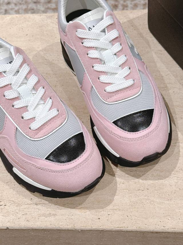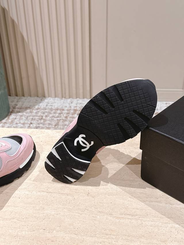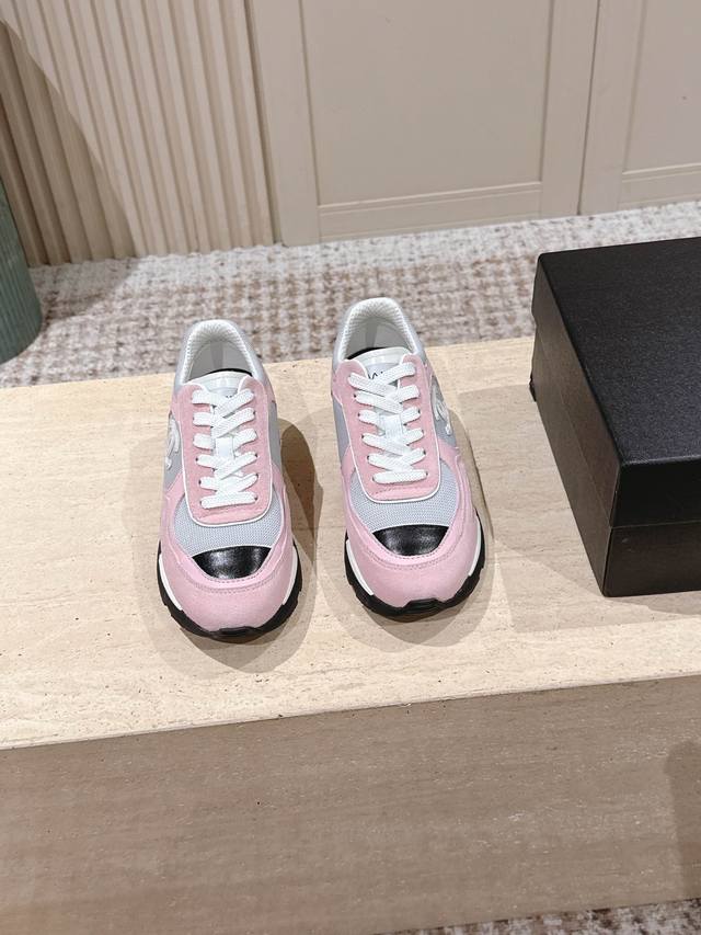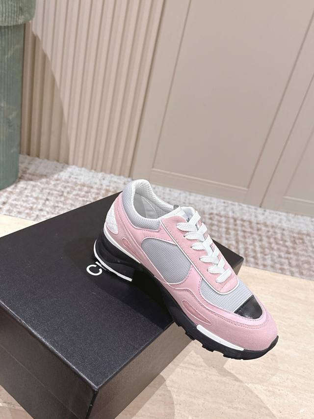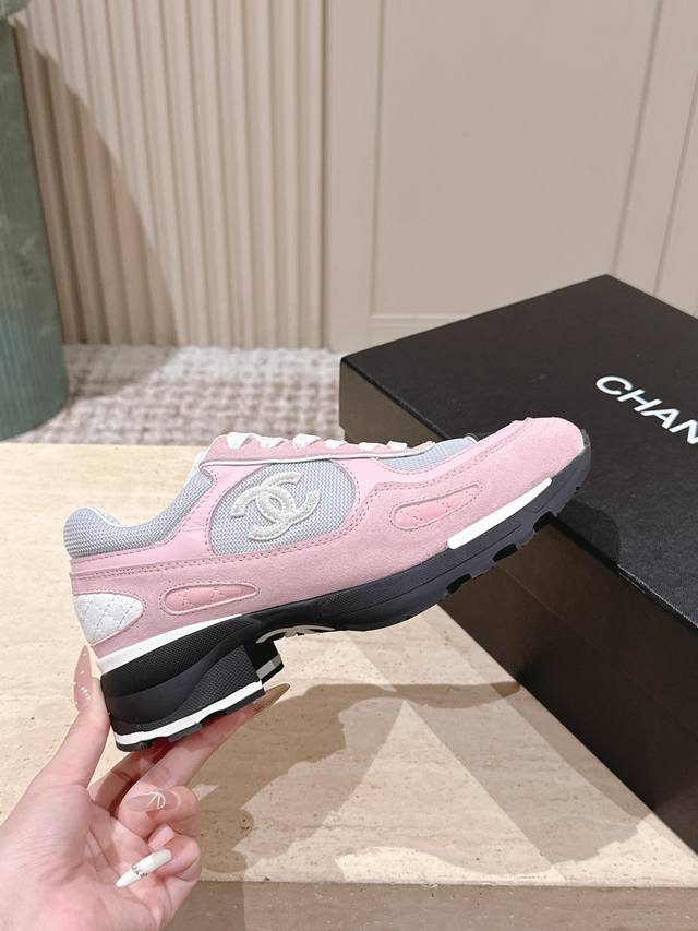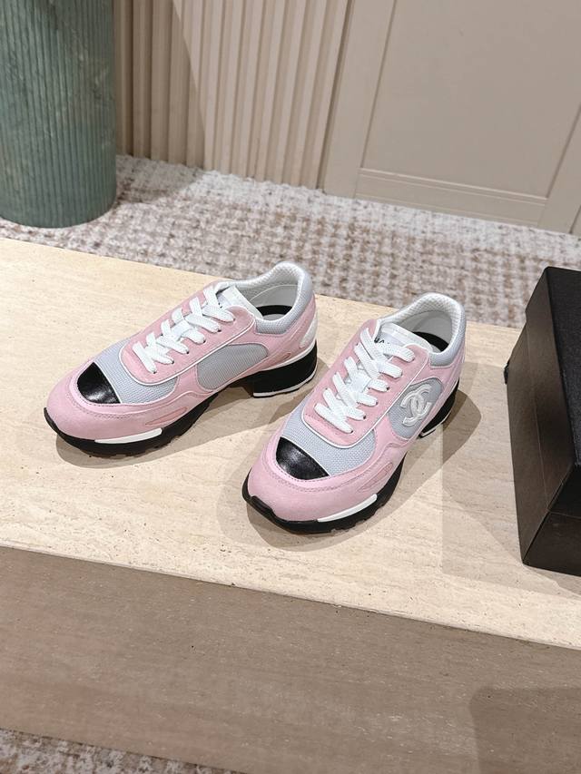 顶级版本: ::Chane* 25Ss 香奈儿低跟运动鞋 DDD 采用皮革与网面拼接的材质,兼具质感与透气性。鞋身带有品牌标志性的双C Logo,辨识度极高,有白色、黑色、粉白拼接三种配色,风格涵盖简约、酷感与甜美。 DDD 低跟款式,在提升时尚感的同时,还能起到一些增高效果;系带设计贴合脚型,穿着舒适且便于调节松紧。融合了运动风与奢华感,既适合日常休闲,又能为造型增添高级感。 DDD 鞋面:牛皮 网布 DDD 内里:羊皮 棉网 DDD 跟高:2.0高 DDD 大底:Tpu大底 DDD Size:35~4