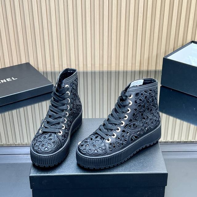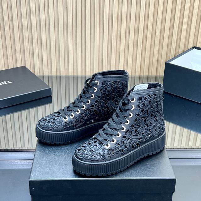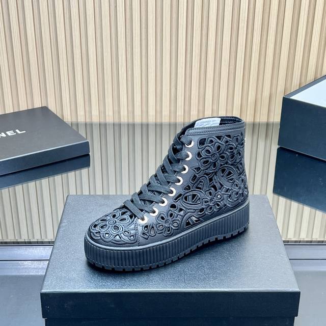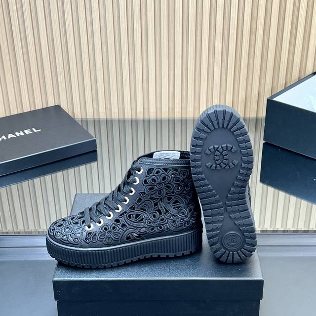 / 顶级版本 Chanel|小香激光电绣镂空短靴、凉靴 全网一双让女神可以穿四季的靴子,时尚休闲高端大气。 脚感很舒适 皮质超级柔软 进口牛皮增加精致的激光电绣镂空