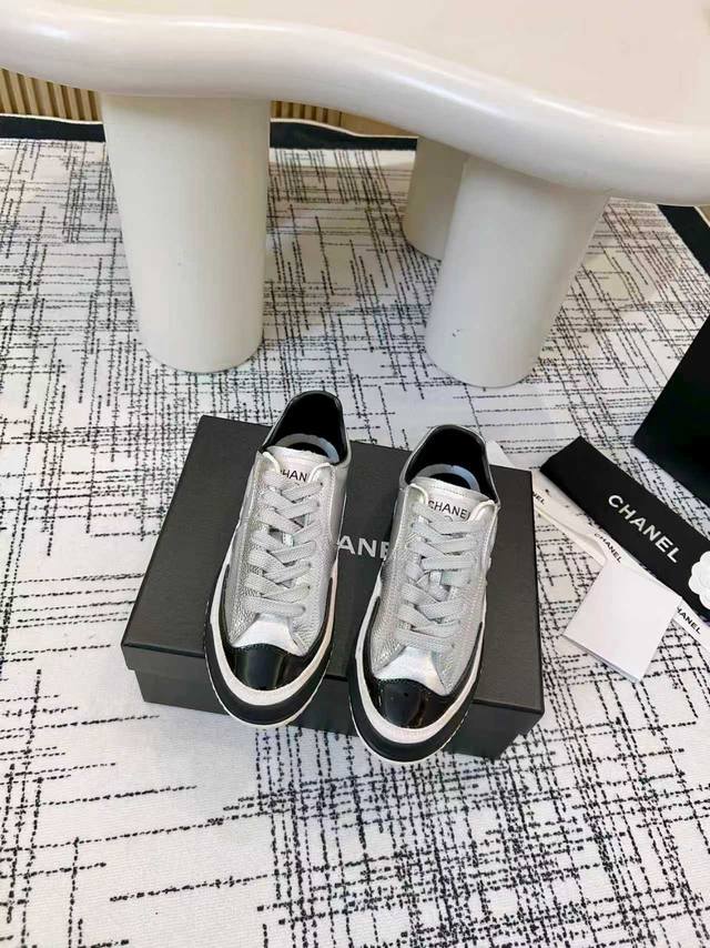 顶级版本 Chanel香奈儿 2025秋款 专柜顶级双C休闲鞋 这款经典设计;不平凡的电绣双C 电绣工艺 上脚非常轻巧 舒适超级秀气优雅的一款户外都能兼顾 Go 材料: 鞋面采用: 原版进口羊皮 内里采用: 原版羊皮内里 专柜精品包装全套女35–40 41定做 三色可选 银色 黑色 白色 L