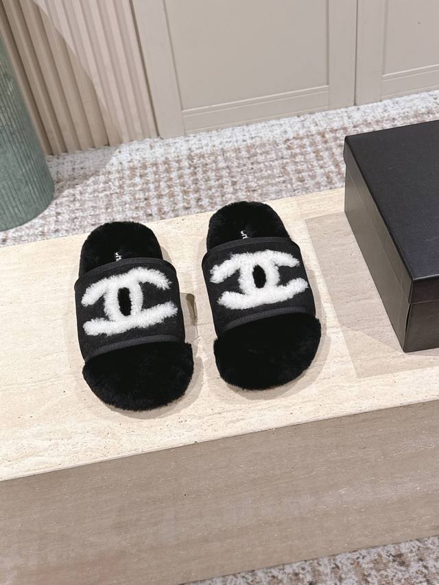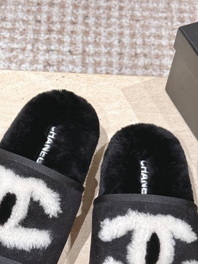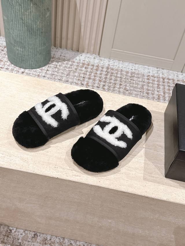 顶级版本: Chanel 经典四季双C毛毛拖鞋!这款毛拖真的是真太可爱了~ 柔软蓬松的毛毛,舒服暖脚 秋冬搭配袜子休闲又慵懒 上脚真的好看又时髦 进口羊毛,手感