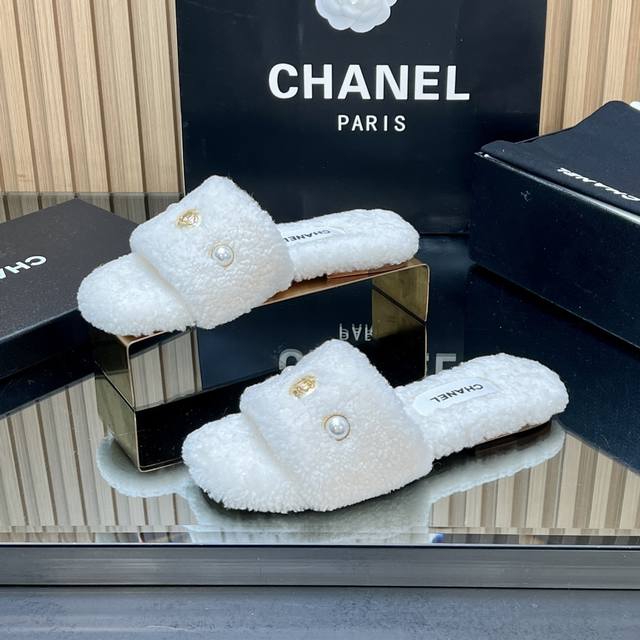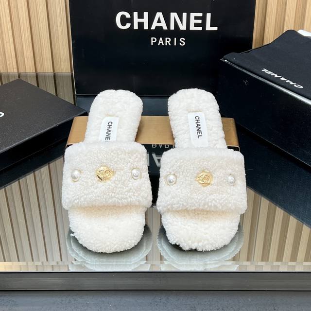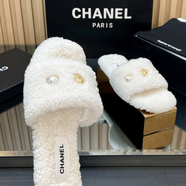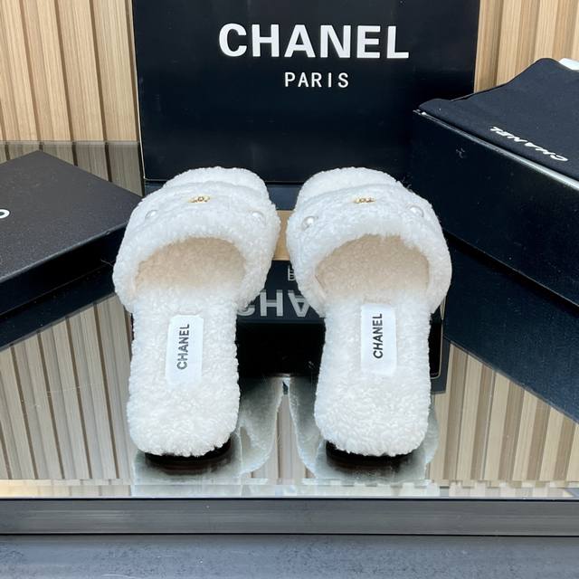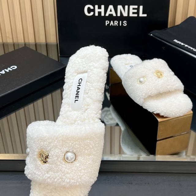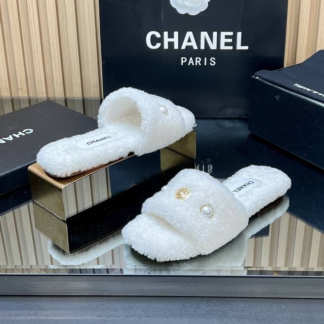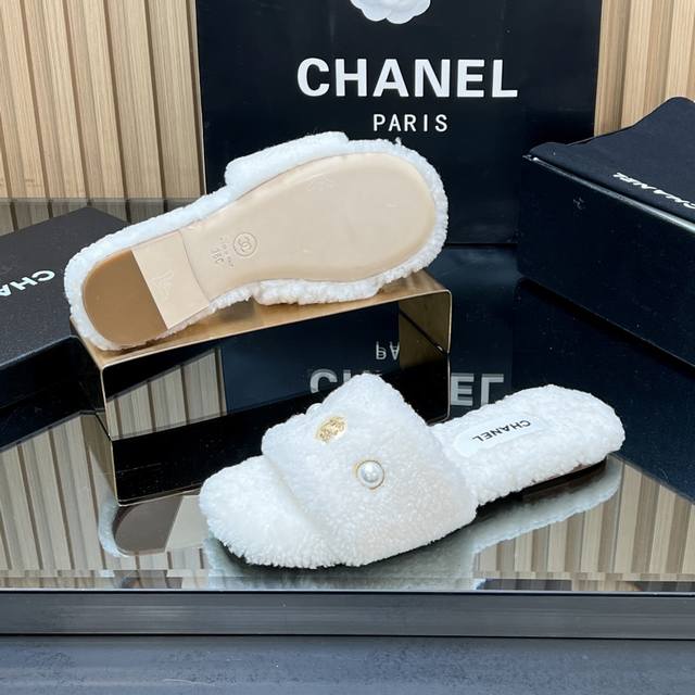 顶级版本 Chanel 香奈儿珍珠羊羔毛拖鞋 毛毛拖鞋 秋冬系列火爆上新,这一季毛拖香家小爆款! 认准我家细节实力拍 专柜买版按正品1:1复制, 细节完美 百分