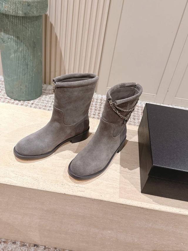 顶级版本: DDD Chanel 香奈儿 2025秋冬新款朋克风格链条女短靴 小香字母Logo五金扣圆头低跟机车骑士靴 DDD 材质:鞋面进口小牛皮 进口羊猄皮+水染牛皮内里+意大利真皮大底 DDD 跟高:3Cm DDD Size:35-41 40.41定做不退换 DDD