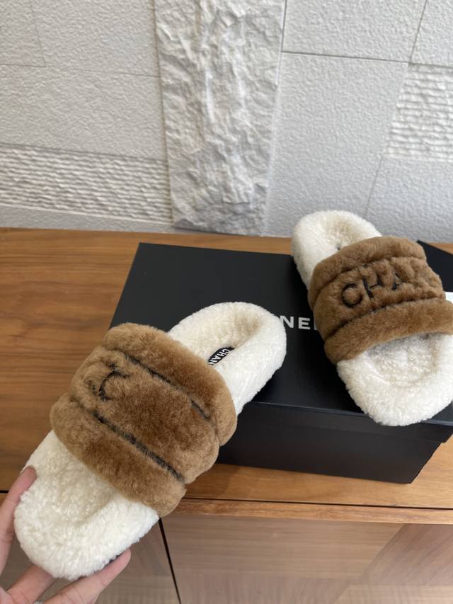 顶级版本: Chanel 香奈儿 2025 秋冬新款 双C 毛毛拖鞋 Chanel秋冬新款羊羔毛拖鞋,选用高品质羊毛,柔软又保暖,秋冬穿超舒服!鞋面有经典双Cl
