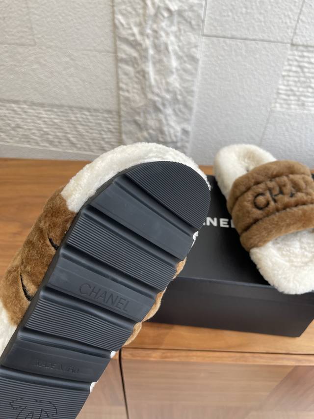 顶级版本: DDD Chanel 香奈儿 2025 秋冬新款 双C 毛毛拖鞋 DDD Chanel秋冬新款羊羔毛拖鞋,选用高品质羊毛,柔软又保暖,秋冬穿超舒服!鞋面有经典双Clogo,辨识度满分,品牌感十足,厚底设计,穿着更舒适,适合长时间居家或室内活动。简约又高级,百搭各种家居服和轻便外出装。 DDD 面料:进口羊毛 DDD 大底:原版开模橡胶大底 DDD Size:35-40 40定做不退换 DDD