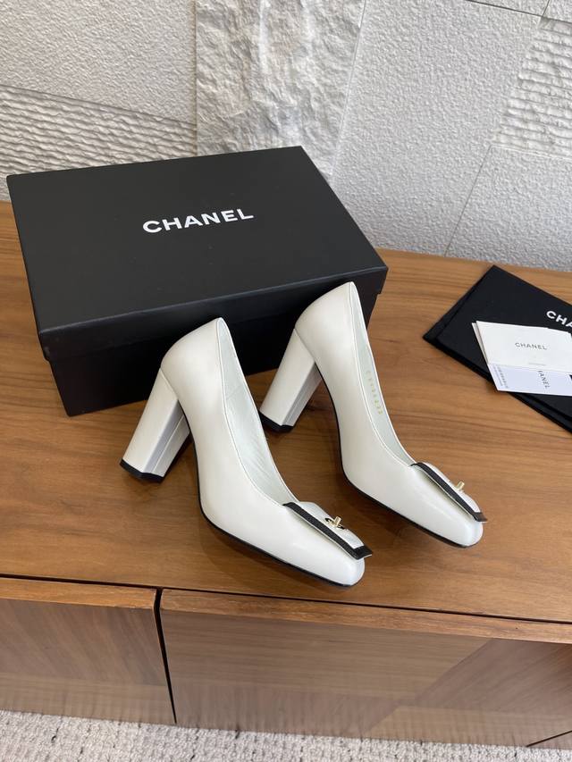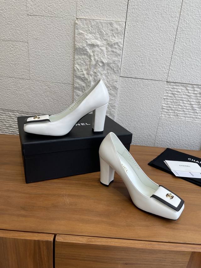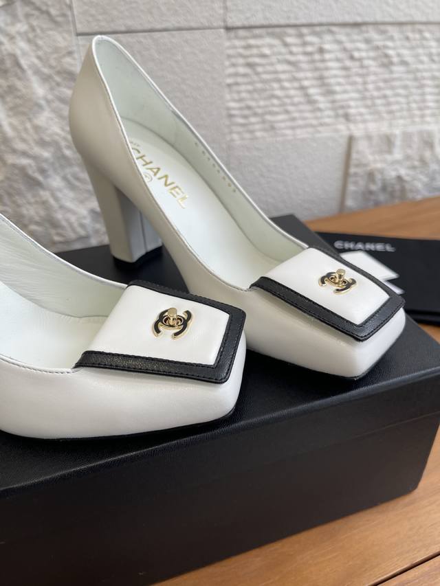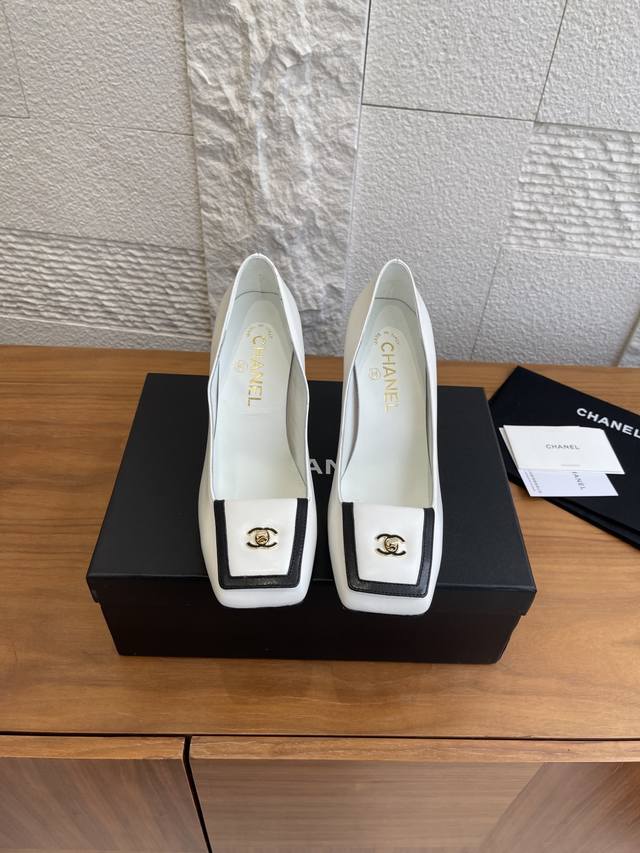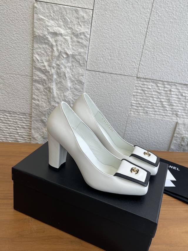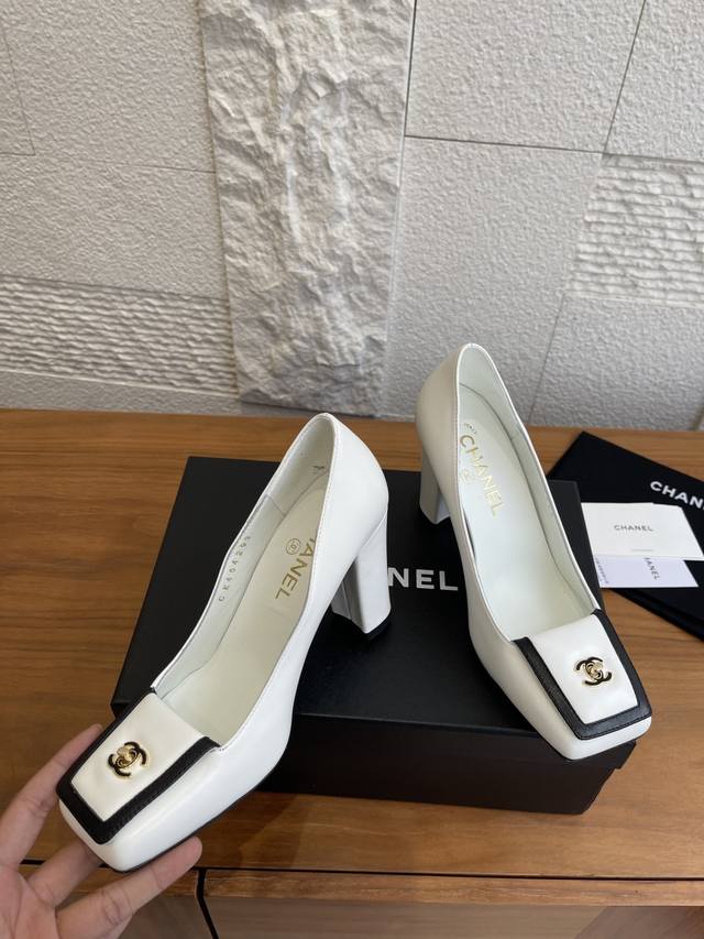 顶级版本: DDD Chanel 香奈儿 2026 春夏发布会新款 方头 高粗跟 单鞋 DDD Chanel香奈儿2026春夏发布会新款系列,鞋头处有拼接,搭配标志性金色双C金属扣;鞋型是方头设计,采用粗跟样式,兼具优雅与时尚感。该款鞋风格优雅精致,适合职场通勤、正式晚宴等偏精致的场合,可搭配小西装、连衣裙等单品提升气场。 DDD 面料:进口小羊皮 DDD 内里:进口羊皮 DDD 大底:意大利进口真皮大底 DDD 跟高:9Cm DDD Size:35-41 40 41定做不退换 DDD