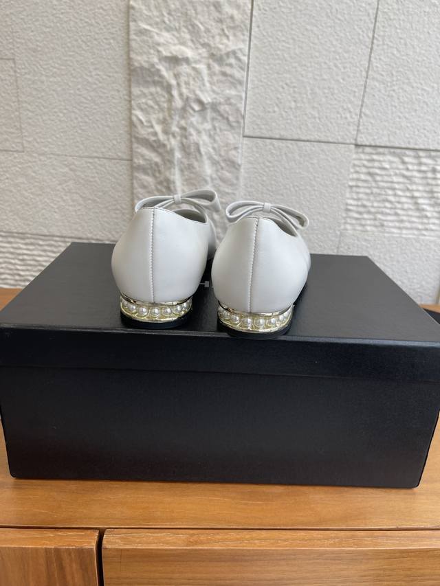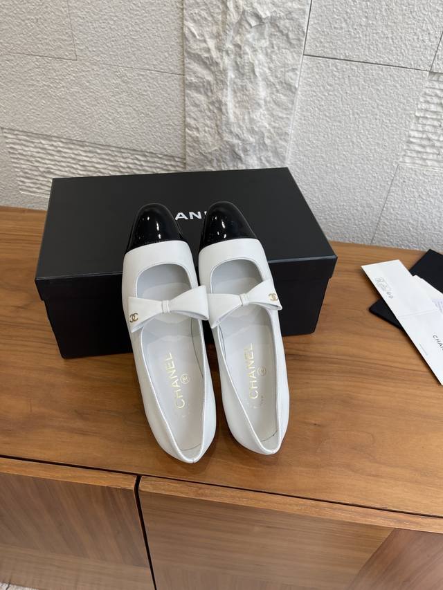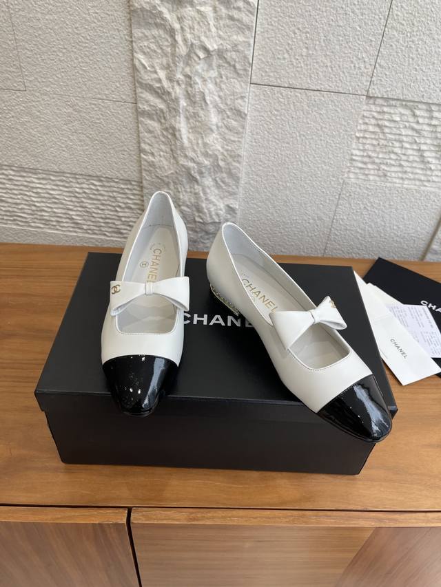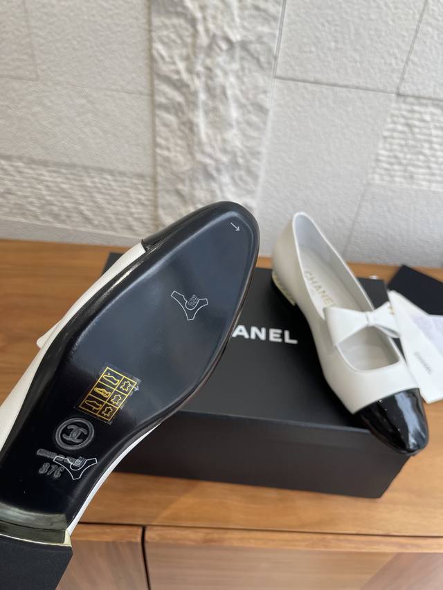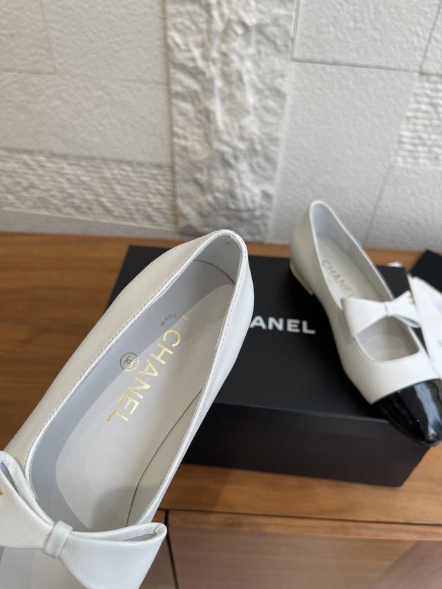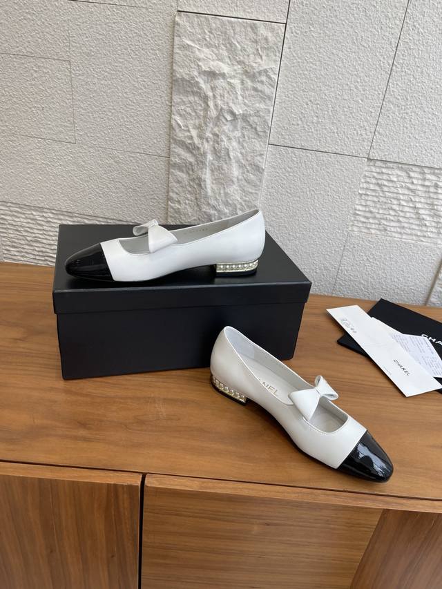 顶级版本: Chanel 香奈儿 25B 早秋新款 蝴蝶结 珍珠跟 玛丽珍 Chanel小香蝴蝶结玛丽珍鞋,拼色设计超经典,白色漆皮+黑色尖头,复古优雅感拉满。