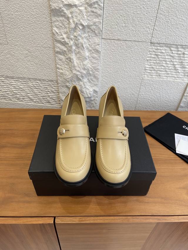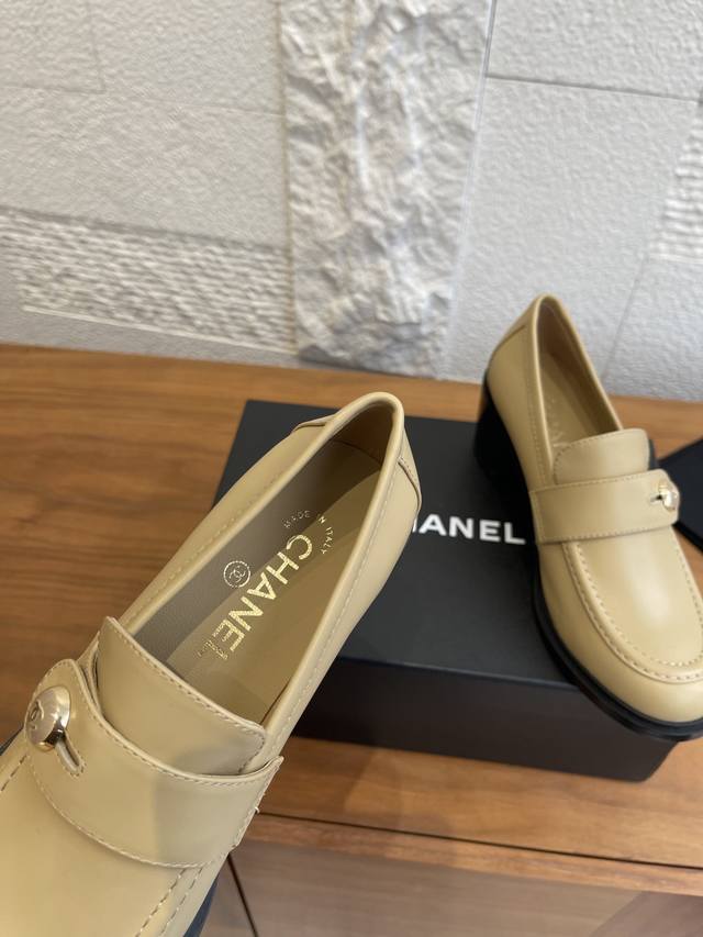顶级版本: DDD Chanel 香奈儿 25K 秋冬新款 双 C珐琅彩扣 平底 厚底 乐福鞋 DDD Chanel 乐福鞋,真皮鞋面+金属纽扣,简约又高级。圆头设计不挤脚,宽脚也友好,厚底增高又舒适,通勤休闲都能穿。内里进口羊皮,柔软透气,久穿不累。白色百搭,裙装裤装都能轻松Hold住,优雅Or休闲随心切换~适合大多数女生,实用又时髦,是秋冬必入单品! DDD 面料:进口小牛皮 进口开边珠 DDD 内里:进口羊皮 DDD 大底:意大利进口真皮大底 DDD Size:35-41 40 41定做不退换 DD