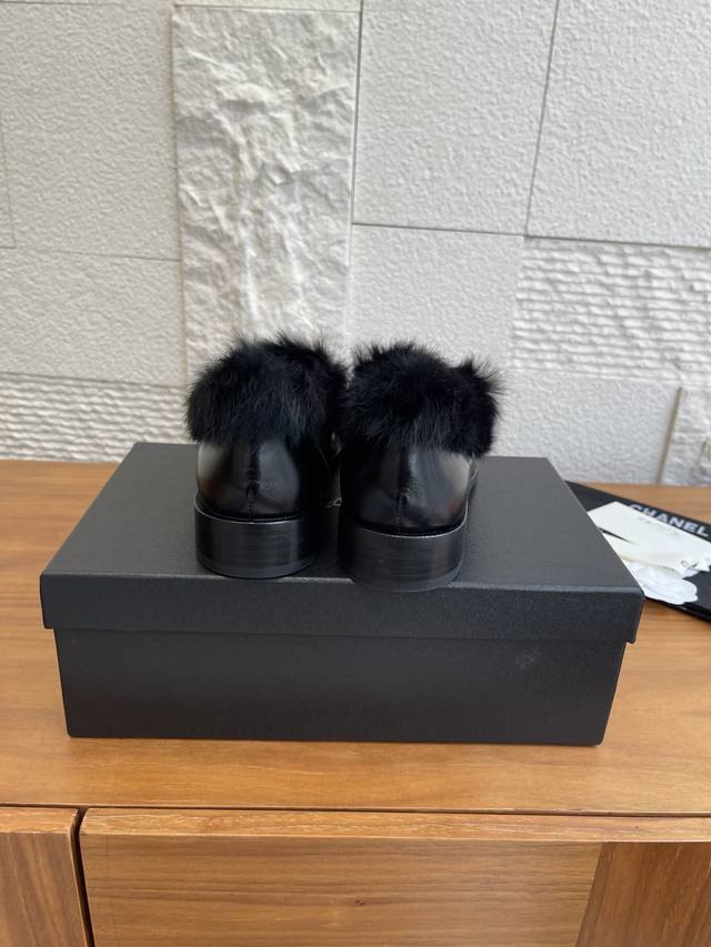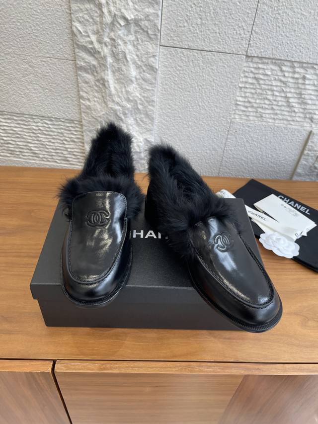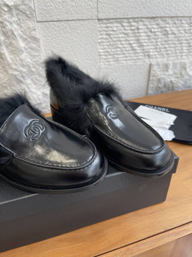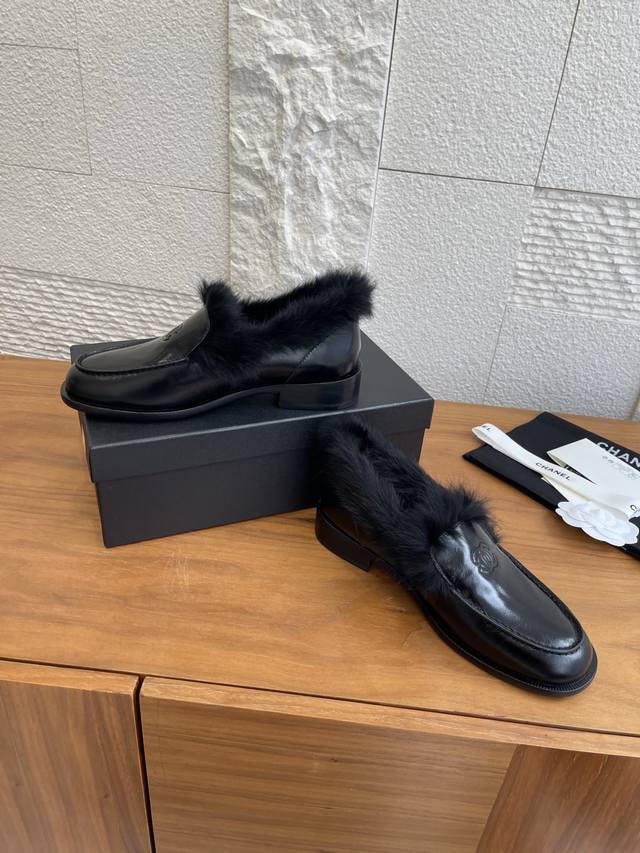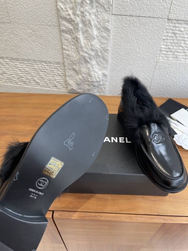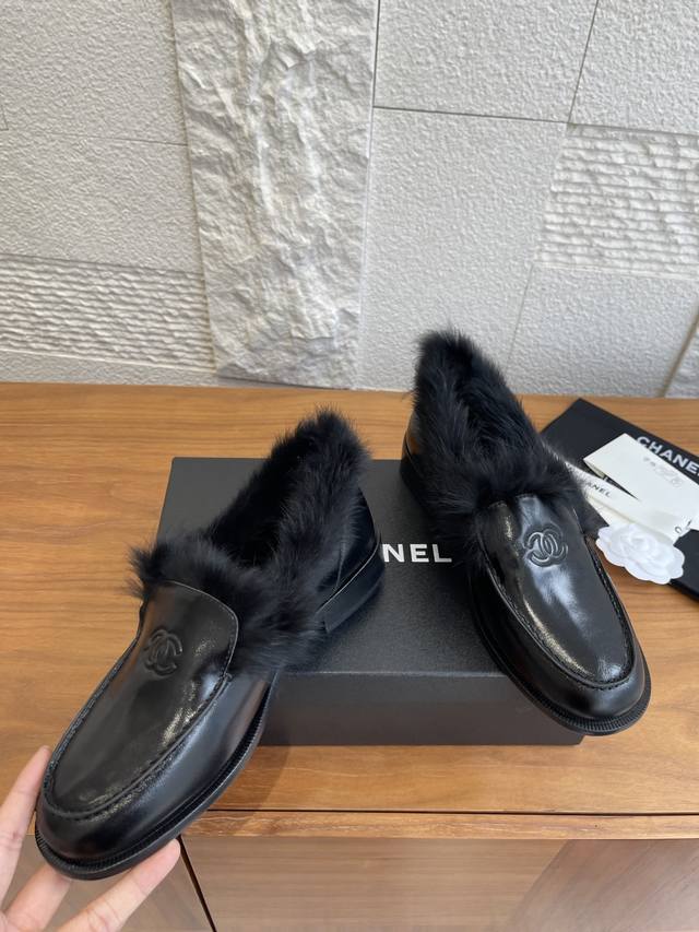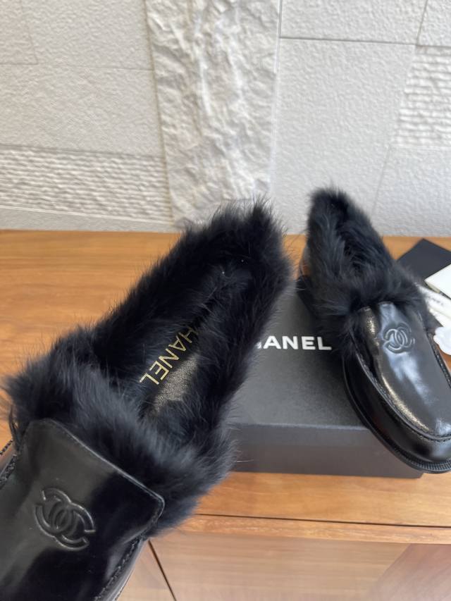 顶级版本: DDD Chanel 香奈儿 25N Coco Neige 滑雪系列 毛毛鞋 乐福鞋 DDD Chanel Coco Neige滑雪系列毛绒乐福鞋,黑色亮面皮革+托斯卡纳毛毛,柔软又保暖,秋冬穿超合适!鞋面有经典双C Logo,品牌感满满。毛绒设计超有氛围感,随便搭大衣、毛衣都很出彩,日常出街或轻奢场合都能轻松驾驭~鞋内里也很舒适,长时间穿也不累,是冬季穿搭的实用时髦单品! DDD 面料:进口牛油皮 高丝光牛反绒 DDD 内里:进口托斯卡纳毛毛 DDD 垫脚:进口羊皮 DDD 大底:意大利进口