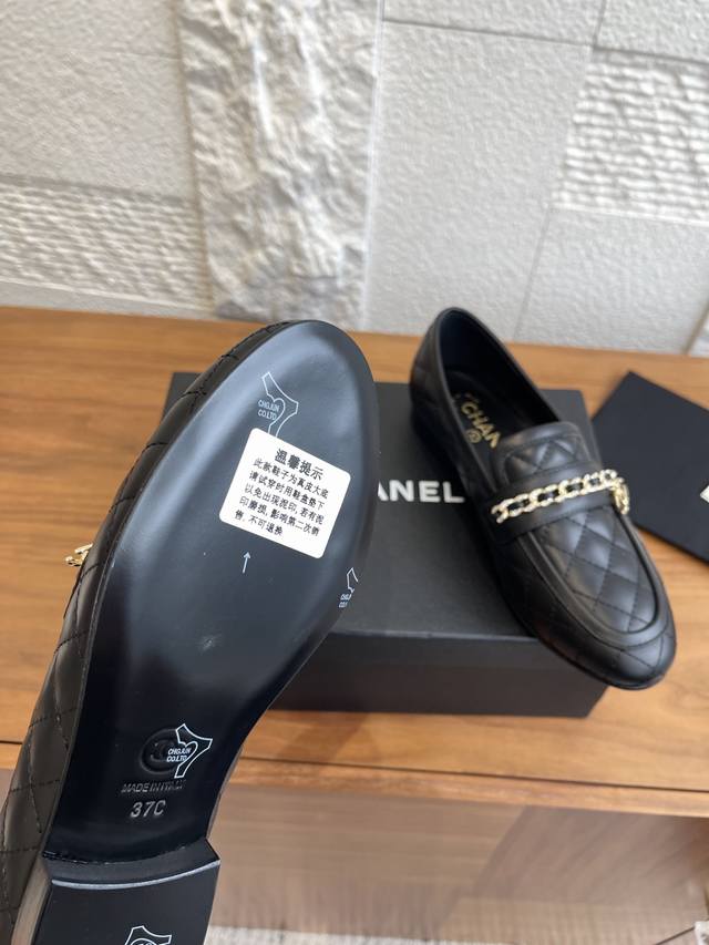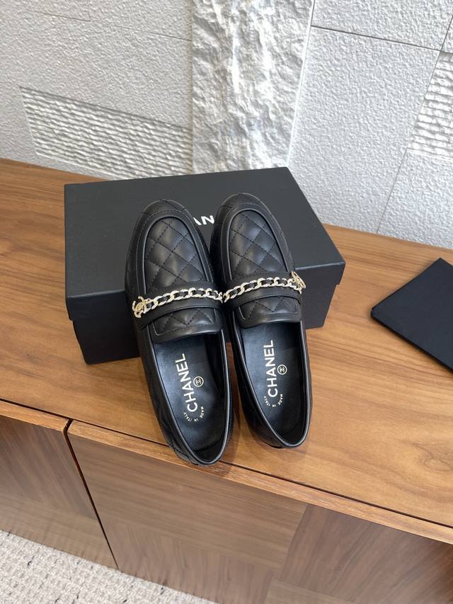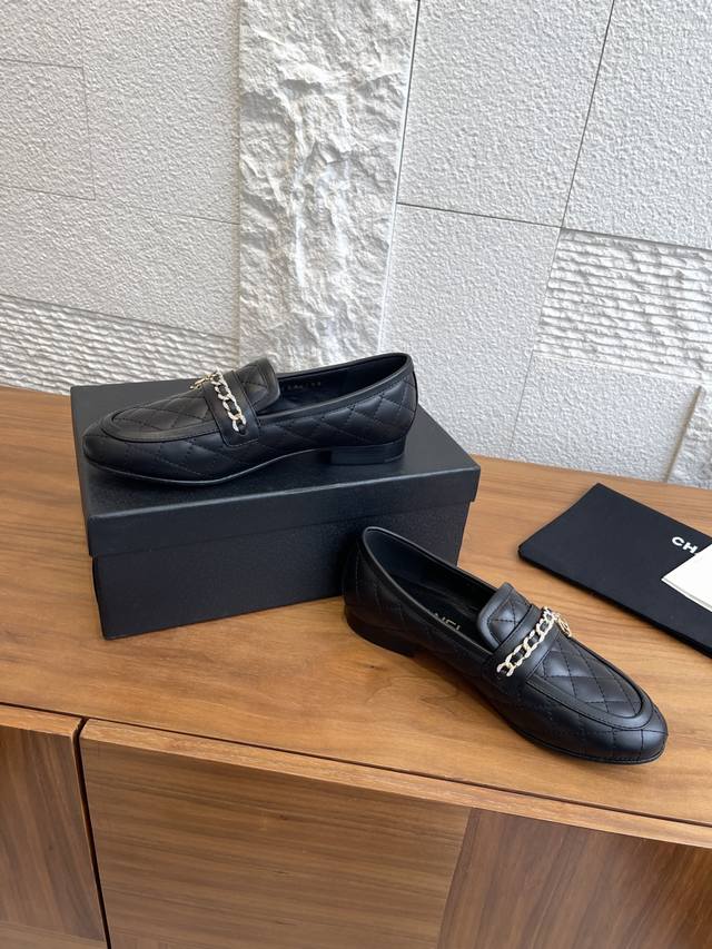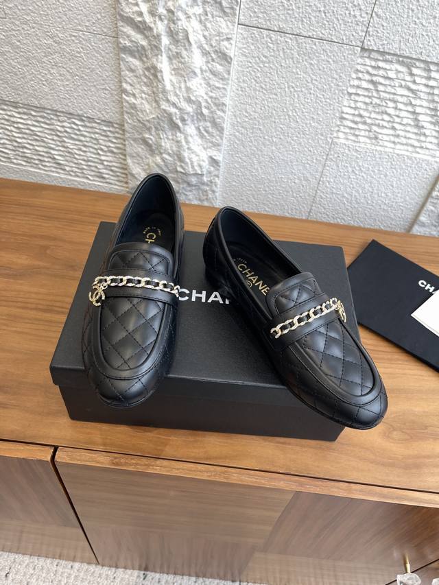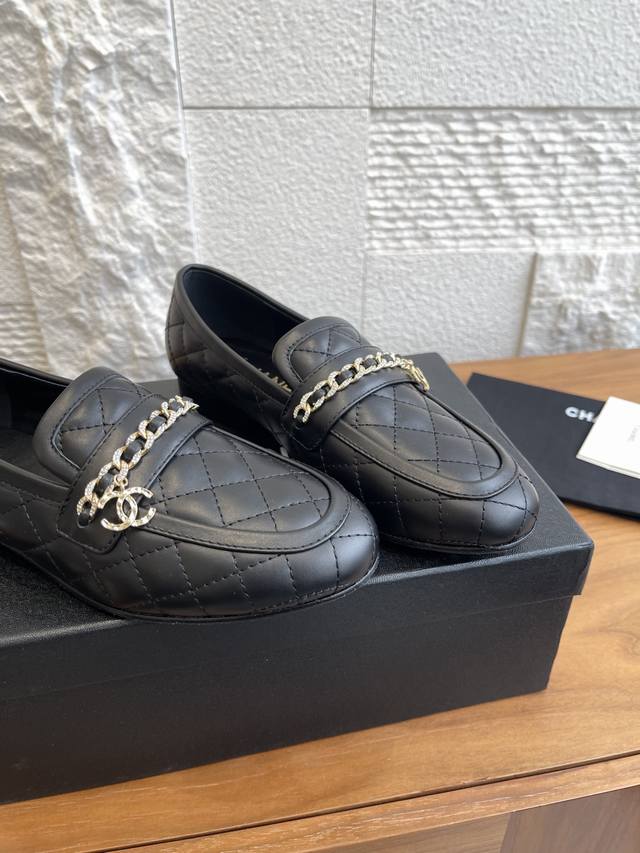 顶级版本: Chanel 香奈儿 25Ss 早秋新款 小香双C钻链 电绣菱格 乐福鞋 Chanel香奈儿经典乐福鞋,电绣菱格鞋面饰以小香链条点缀水钻和双C钻石五