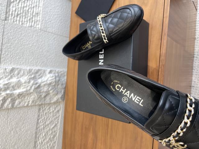 / 顶级版本: Chanel 香奈儿 25Ss 早秋新款 小香双C钻链 电绣菱格 乐福鞋 Chanel香奈儿经典乐福鞋,电绣菱格鞋面饰以小香链条点缀水钻和双C钻石五