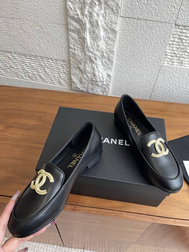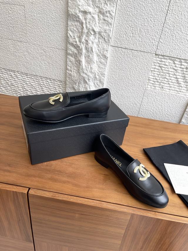 顶级版本: Chanel 香奈儿 25Ss 秋冬新款 大双C金属扣 乐福鞋 小香重温经典乐福鞋,鞋面点缀大双C五金扣在光线照耀之下闪烁着一份璀璨,给你添加一份色彩,轻松游走于通勤和休闲场合 做个漫不经心的时髦优雅女子~一年四季皆可穿 鞋面:进口小牛皮 内里:进口混种羊皮 大底:意大利真皮大底 Size:35-41 40 41定做不退换