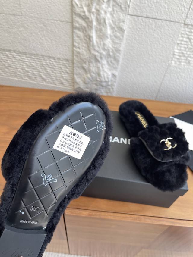 顶级版本: Chanel 香奈儿 25Ss 秋冬新款 电绣菱格 书包扣 毛毛拖鞋 Chanel小香毛拖,圆形鞋头,鞋面饰以书包翻盖双C扣,薄软垫皮革内底,柔软蓬松的毛毛,舒服暖脚,太有特色了 今年人手必备一双 复古风经典款 超级百搭 简单大气 无论裙装裤装都能随意搭配 妥妥的颜霸 无不彰显它的品牌气息, 面料: 进口羊毛 垫脚: 进口羊毛 大底: 意大利进口真皮大底 Size: 35-41 40 41定做不退换