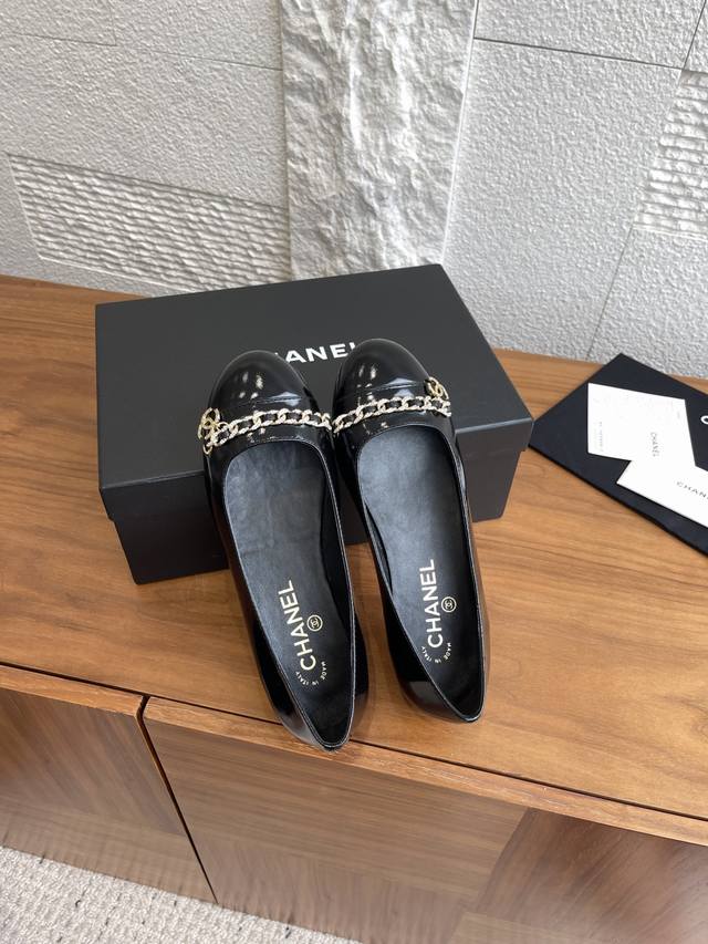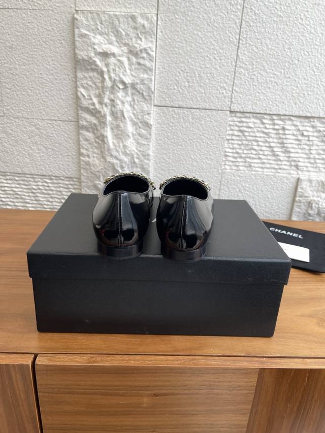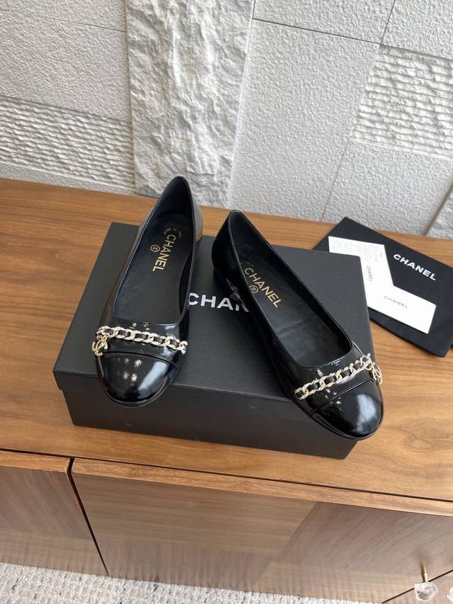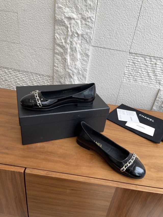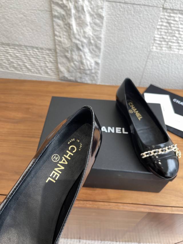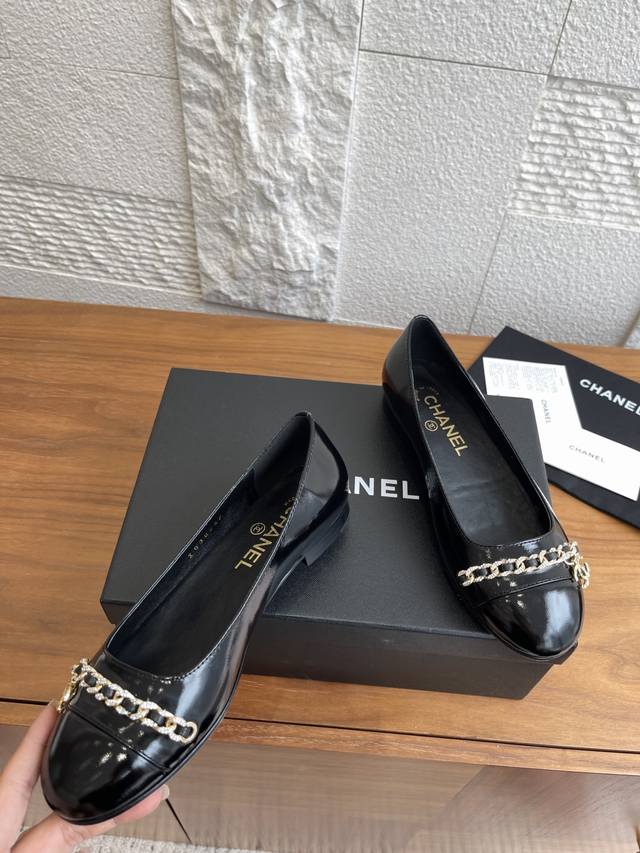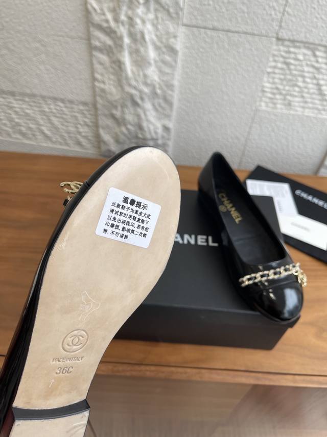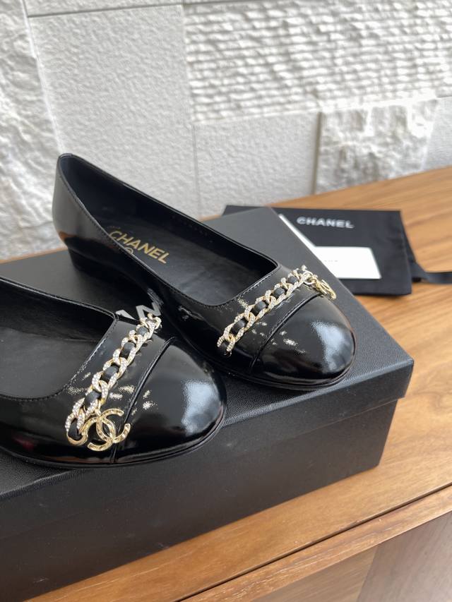 顶级版本: Chanel 25Ss 早秋新款 钻石链条 双C吊坠 芭蕾舞鞋 玛丽珍 Chanel新款芭蕾舞平底单鞋,经典链条上点缀的钻面让整双鞋星光熠熠,双C吊坠Logo点缀简约大气 ,舒适百搭单品相对于大多数芭蕾舞鞋来讲,但也就是点到为止,并不会过于出挑,一双好的单鞋就是可以和你走过一年四季的穿搭,无论是春夏的短裤小裙子还是秋冬的大衣牛仔裤 那都不在话下 面料:进口小羊皮 内里 垫脚:进口山羊皮 大底:意大利进口真皮大底 Size:35-41 40 41定做不退换