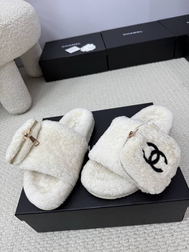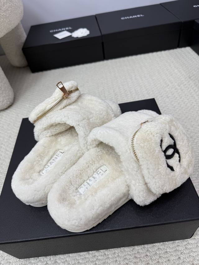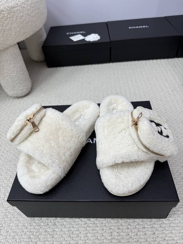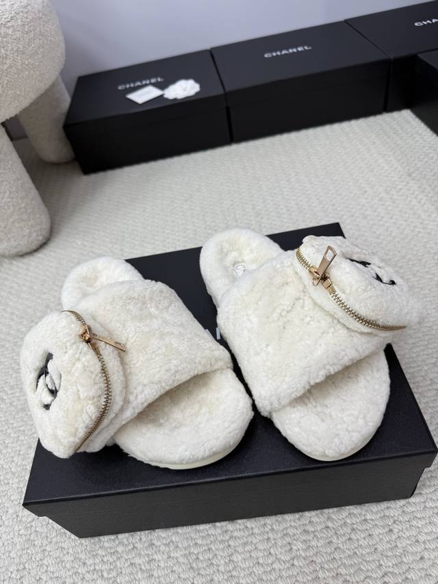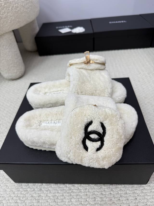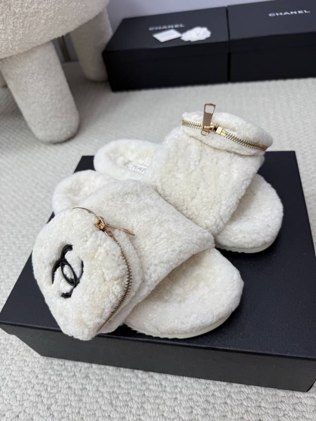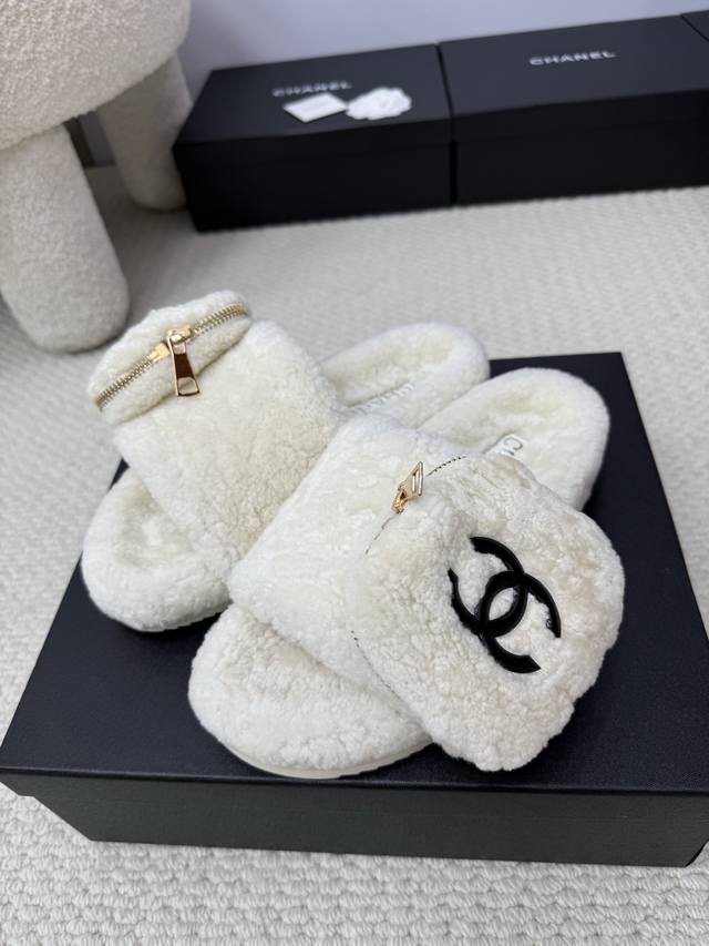顶级版本 Chanel Ss25 New Arrival~ 小香秋冬新款羊毛拖鞋 鞋面拉链小钱包 双字母Logo饰以点缀, 非常的醒目,时髦又洋气~超轻犮泡鞋底
