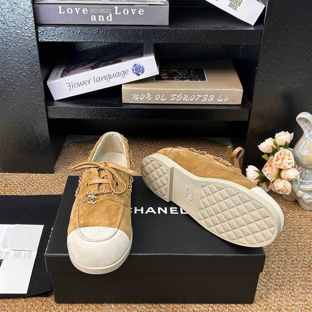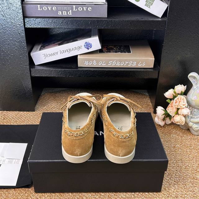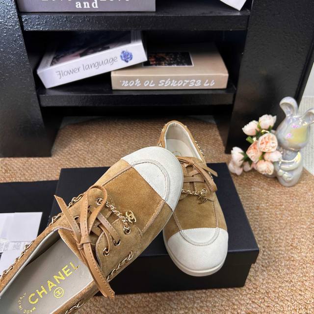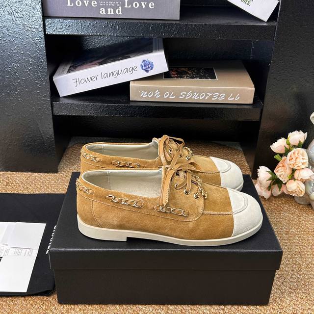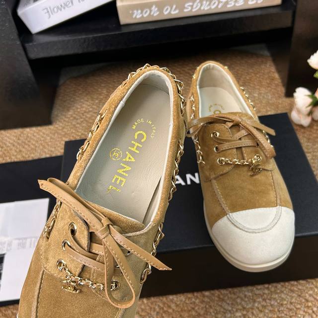 顶级货 Ddd Chanel 香奈儿26C早春新款拼色麂皮乐福鞋 Ddd 鞋底超软 无比舒适的豆豆鞋 日行万步脚不疼 Ddd 小香这双平底休闲鞋 可以说是这几年最具设计感的鞋子了 巧妙选用皮穿链条个性别致 一眼就爱上 Ddd 麂皮拼色 日常又百搭 最最主要是选用了柔软的鞋底 超级舒服好穿 只要上脚试穿都会很惊喜 Ddd 是难得将舒适 洋气 百搭融合得这么好的一款鞋 Ddd 鞋面:牛反绒 Ddd 内里:羊皮 Ddd 鞋底:开模耐磨生胶大底 Ddd Size:35-41 41定制不退换 DDD