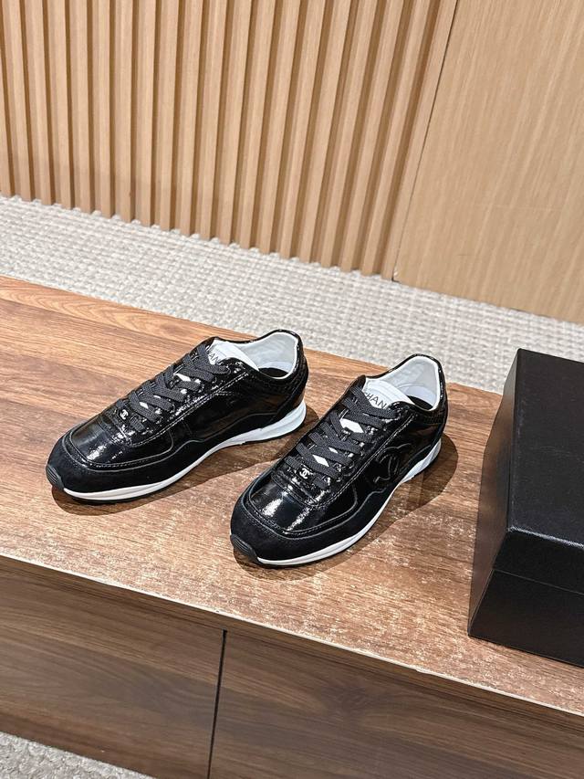 / 香奈儿新款情侣德训休闲鞋 微微尖的德训鞋头更显脚瘦,小牛皮面跟反绒材质的碰撞,时尚,非常上脚舒适! 鞋面:进口牛皮+猪巴戈 内里:进口羊皮 大底:Tpu原版开模