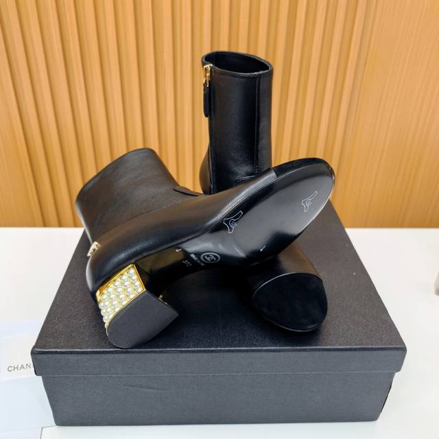 香奈儿珍珠跟短靴 珍珠踏雪 Chanel把银河系镶在了鞋跟上! 冬日终极仙女战靴 当山茶花遇见珍珠瀑布 香奈儿用这双短靴造了一场流动的盛宴 澳洲天然珍珠逐颗筛选镶嵌 鞋跟摇曳的每寸光晕都是高定工坊的数学题 “穿过蒙田大道积雪的那个傍晚 珍珠跟折射着橱窗里的琉璃灯光 连踩出的脚印都像散落的月光项链” 鞋面:A级进口小牛皮 内里:混种羊内里 五金:饰品级电镀五金扣 大底:意大利真皮大底 码数:35-41 40.41订做
