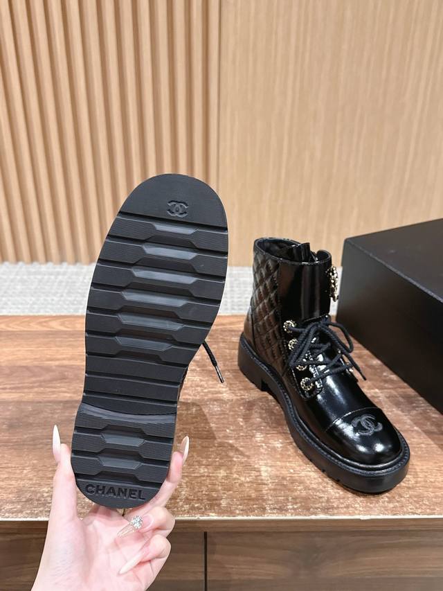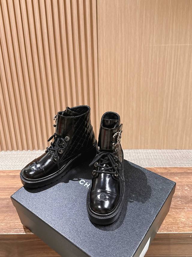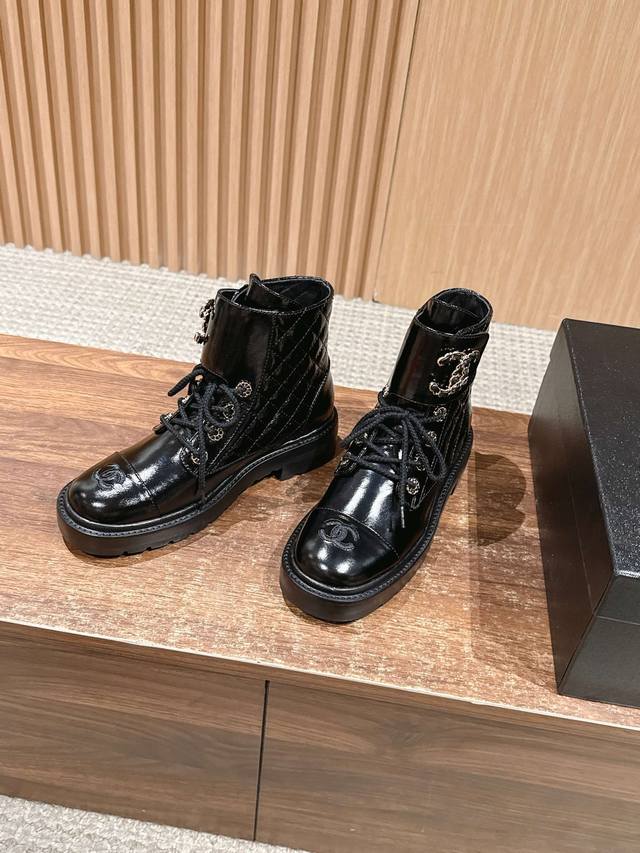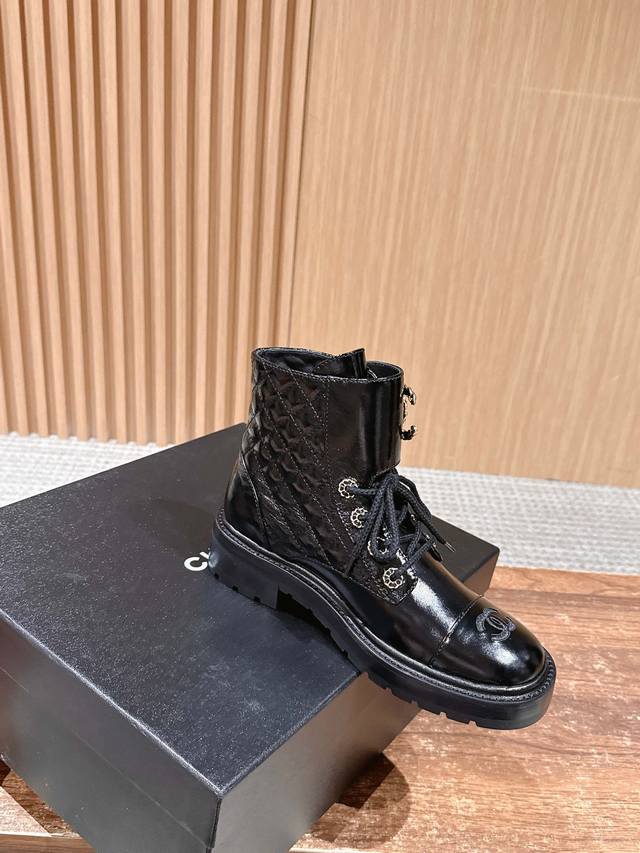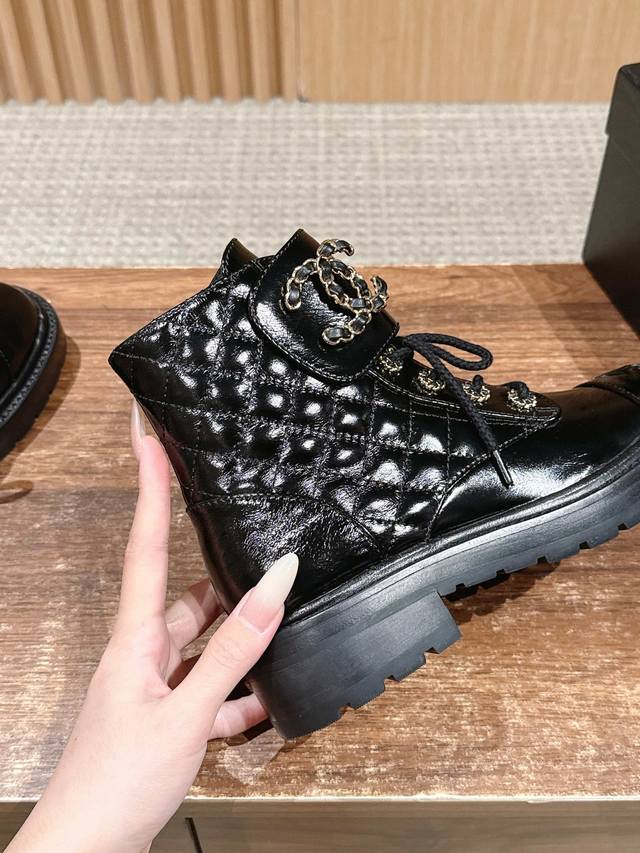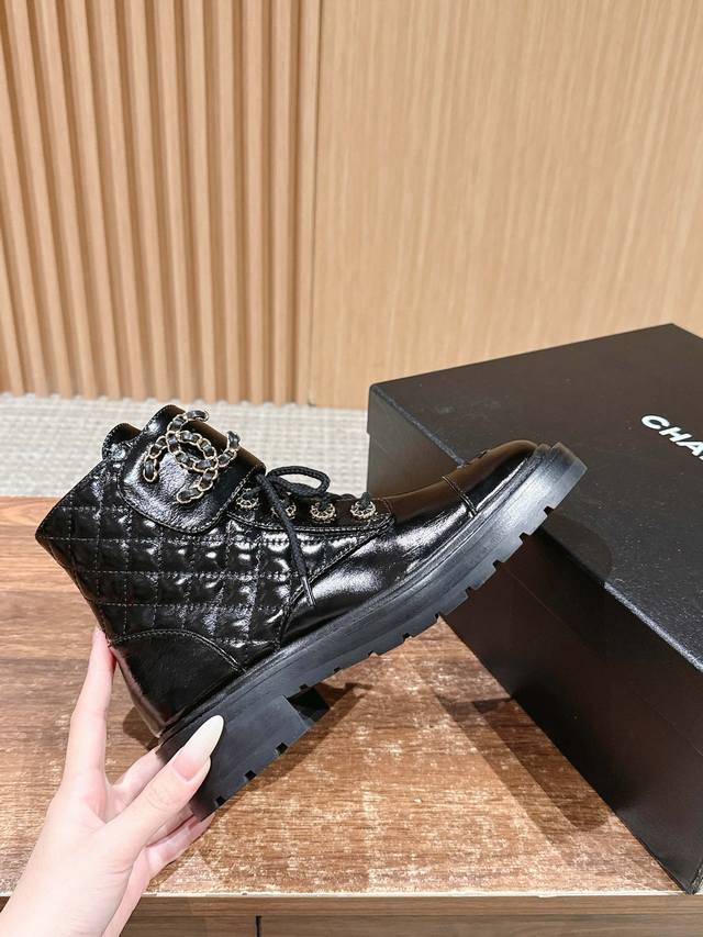 香奈儿秋冬新款双C扣链条 菱格刺绣厚底短靴 辣妹~超显腿长,超级推荐!特定羊皮材质 混种小羊皮内里 独家开模Tpu双C防滑大底 Size:35-40 40定制不