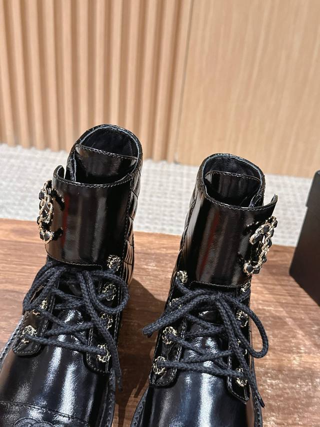 小香家Chanel25秋冬海报款新品链条短靴!经典靴型+英伦复古设计,经典耐看!原版倒模楦型,极致1:1形体,进口独家面料呈现出...