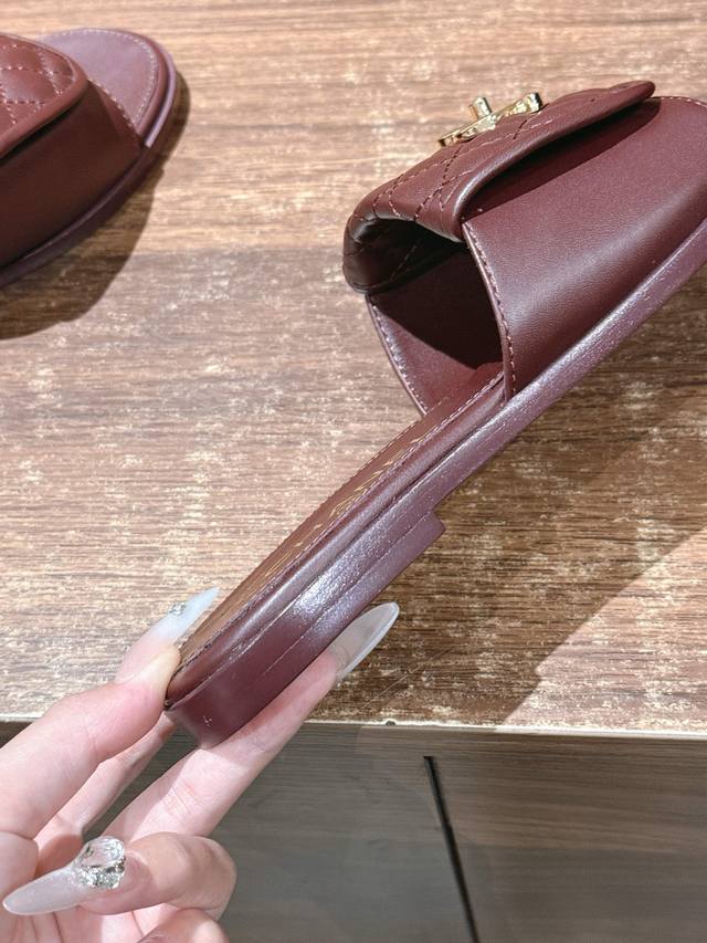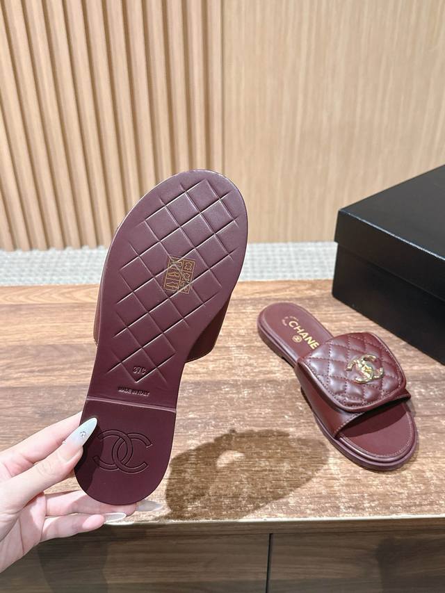 香奈儿菱格书包扣拖鞋 DDD 上脚是要沦陷的节奏!光脚丫穿配袜子都好看,简直就是夏天的灵魂绝配,哪位美女能抵挡的了香奶奶菱格的诱惑,香奶奶双C背包扣拖鞋,专柜每季新品一出必然会被抢光,就是那么好穿 不磨脚,脚感又舒适,应该说每年这个季节都是一鞋难求,原厂鞋楦穿起来从脚到腿,都显得纤瘦而优雅,高贵奢华! DDD 鞋面:混种羊皮 DDD 内里:混种羊皮 DDD 中底包料:混种小羊皮 DDD 饰扣:开合双C扣 DDD 中底:意大利中底 DDD 大底:意大利进口菱格真皮大底 DDD 尺码:35-39 40 41不