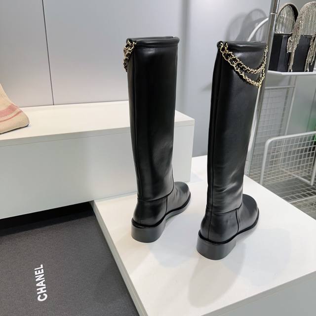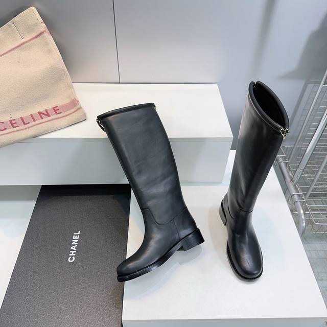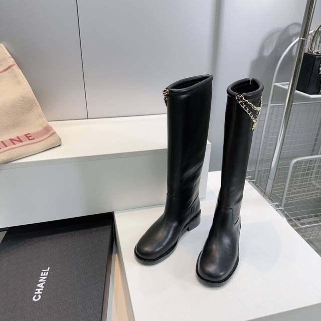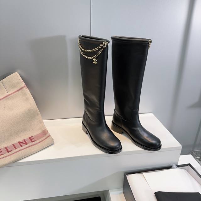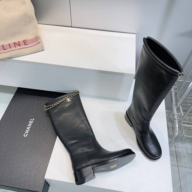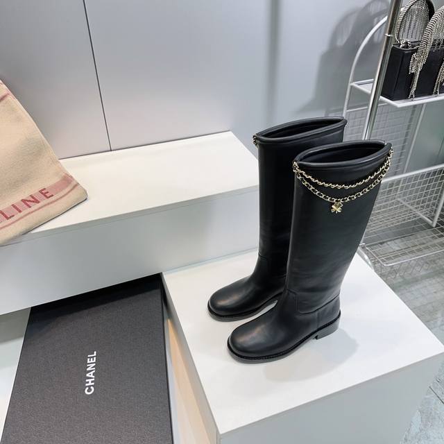 高品质出厂长靴 !顶级品质欢迎对比!Chanel小香25Ss秋冬新品四叶草双C扣链条牛反绒一脚蹬直筒圆头粗跟短靴、长靴系列! 标志性的双C元素与幸运的四叶草巧妙结合,链条的装饰为靴子增添了一份随性与不羁! 在行走间 链条轻轻晃动 散发着独特的魅力。 短靴的设计简洁大方 恰到好处的靴筒高度,能够修饰脚踝线条 展现出女性的优雅与干练。 而长靴则尽显大气与高贵,不仅保暖 ,气场十足。轻松成为众人瞩目的焦点。 无论是搭配牛仔裤打造休闲时尚的日常造型,还是与连衣裙组合 出席重要场合。这一系列靴子都能轻松驾驭 为整体