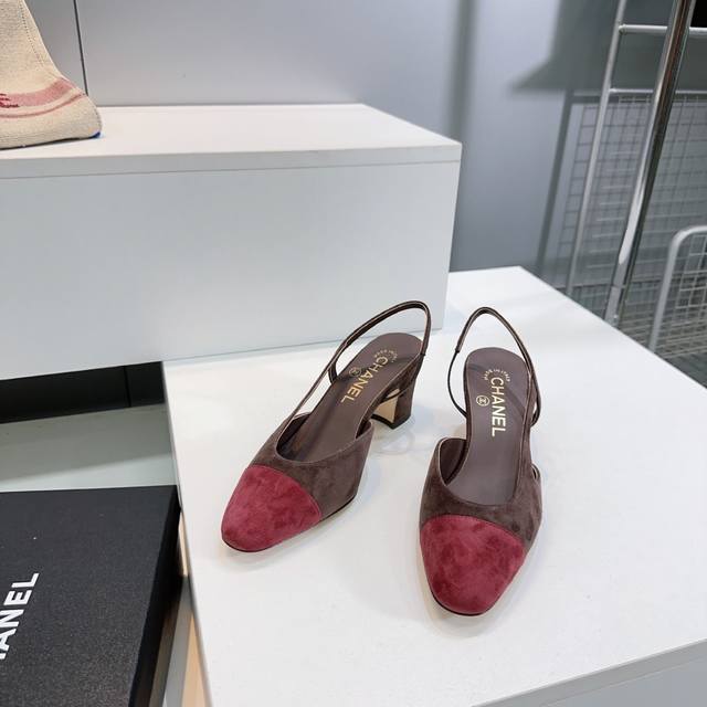 / 高品质出厂 !常年做货原单顶级!欢迎对比!香奈儿Chanel小香经典复古麂皮芭蕾舞后空凉鞋! 平底 中跟!原版购入开发!版型、颜色质感原版一致! 经典之作 鞋面