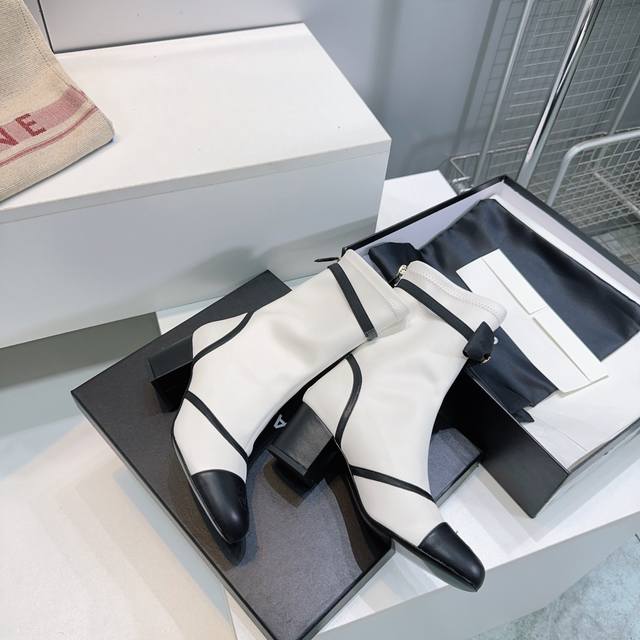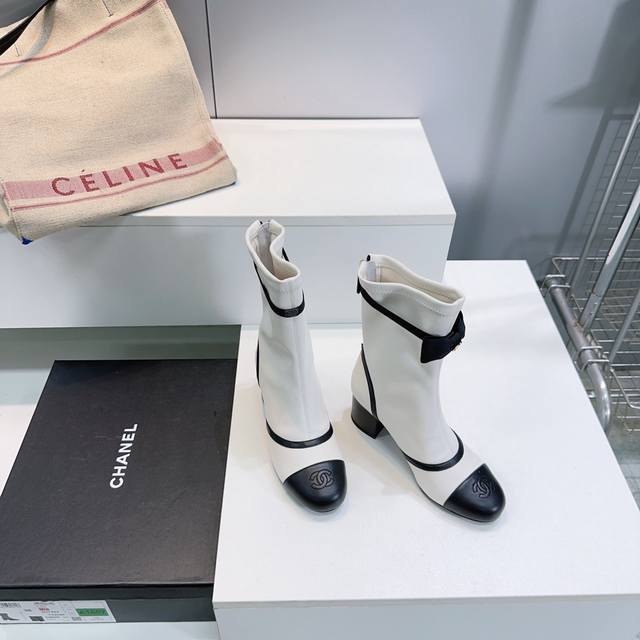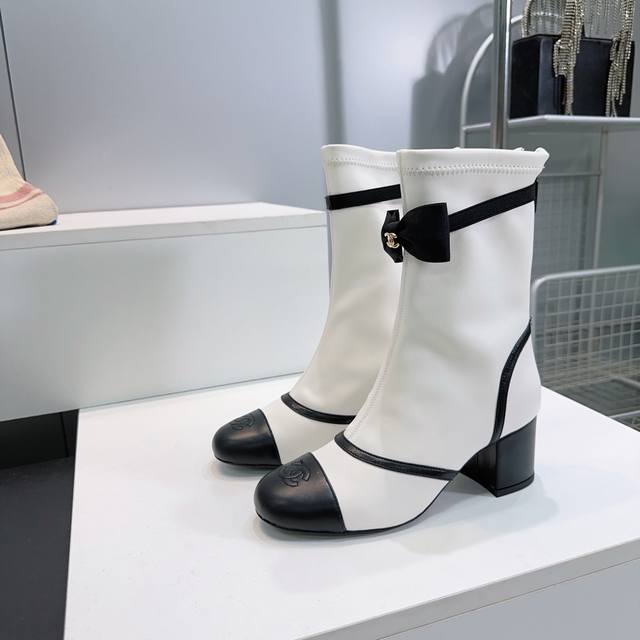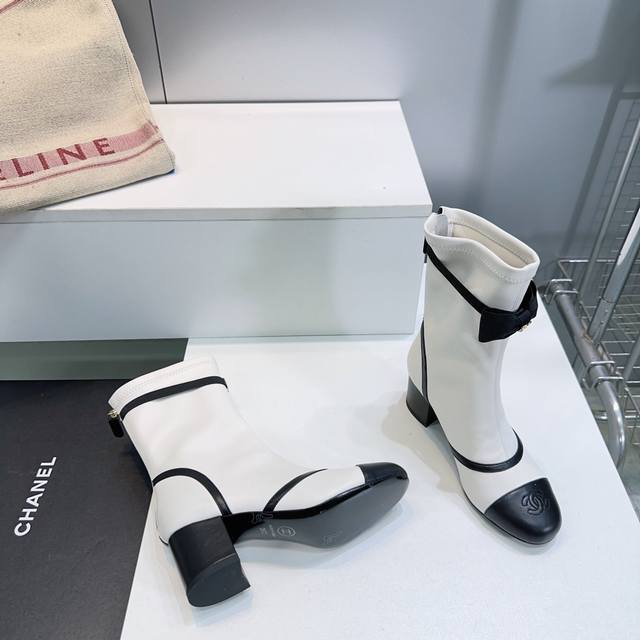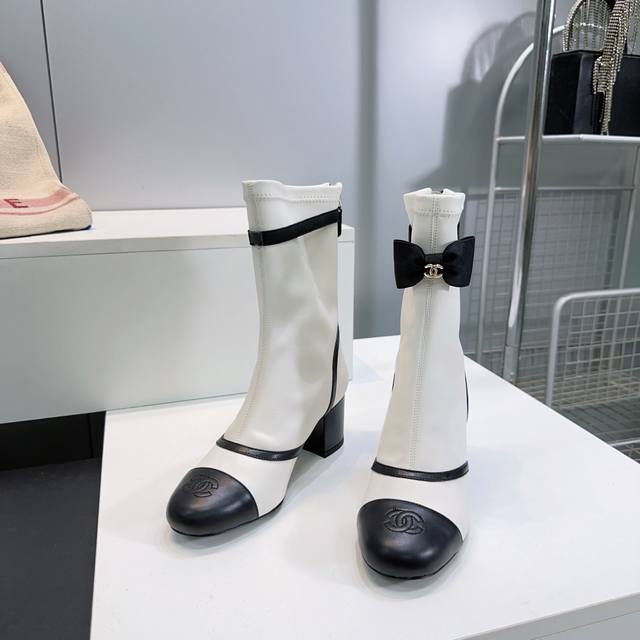 高品质出厂 !顶级品质Chanel香奈儿2025Ss秋冬小香新品蝴蝶结粗跟圆头后拉链弹力皮短靴!本季秋冬季必备单品!! 小红书力推款,怎么搭配都好看,时髦精必备