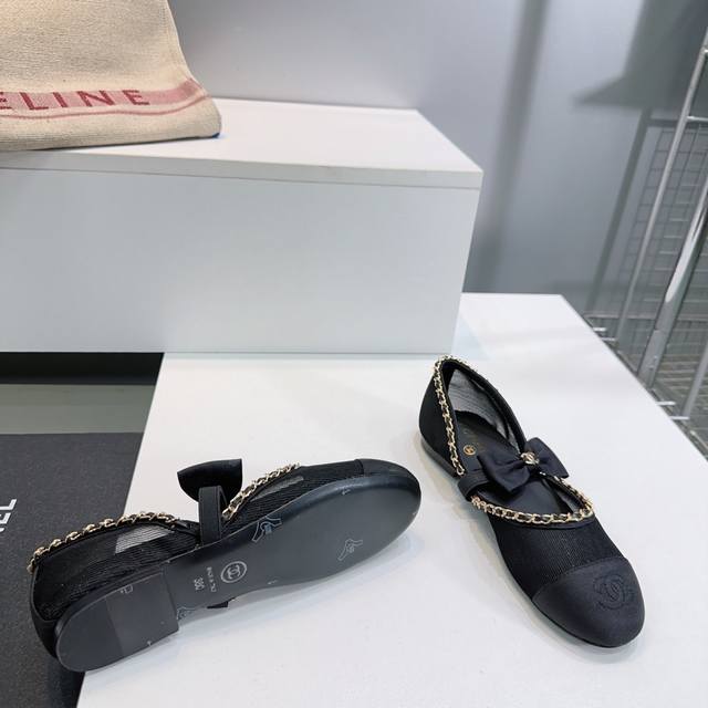 高品质出厂 !顶级品质Chanel香奈儿25秋冬新品小香双C链条蝴蝶结透气网面玛丽珍平跟单鞋!平底芭蕾舞鞋! 简约大方的外观,使其在城市街头也能轻松搭配各种服饰,展现您的独特品味。优雅气质,完美诠释,成为您鞋柜中不可或缺的一员! 鞋面采用原版定制网纱面料 内里垫脚羊皮 意大利进口原色真皮大底 码数:35-41 40.41定做不退换 配原版包装