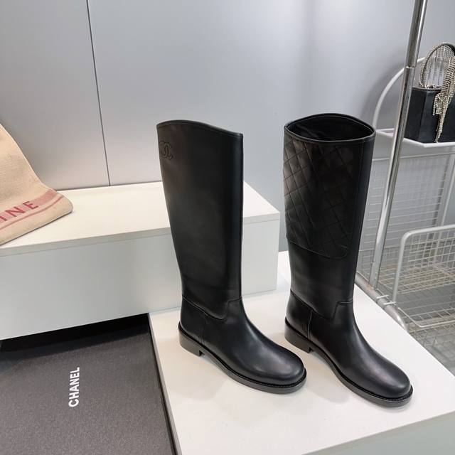 高品质出厂 !顶级品质Chanel香奈儿25Ss秋冬经典C家小香电绣菱格一脚蹬直筒骑士靴长靴! DDD 这款骑士靴真的是帅气时尚的代表,双C电绣Logo 低调不失奢华!简约时尚个性又大气!自然流畅的美感,有种惊艳了时光的美感,冬日也要展现大长腿~ DDD 鞋面采用原版头层小牛皮 DDD 内里垫脚水染羊皮 DDD 意大利进口加厚双层大底 DDD 跟高:2.5Cm DDD 码数:35-41 40 41定制不退换 DDD 配原版包装 DDD