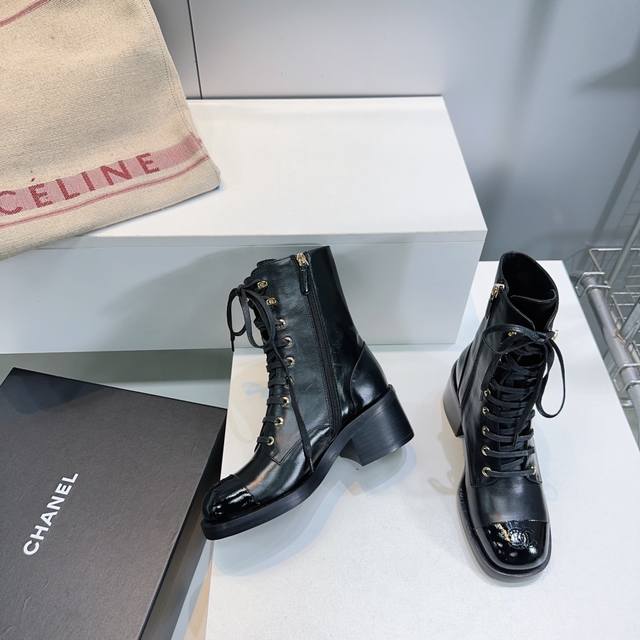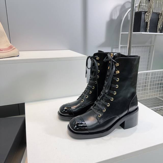 高品质出厂 !顶级品质Chanel 香奈儿2025Ss秋冬新款小香双C简约系带粗跟短靴马丁靴!