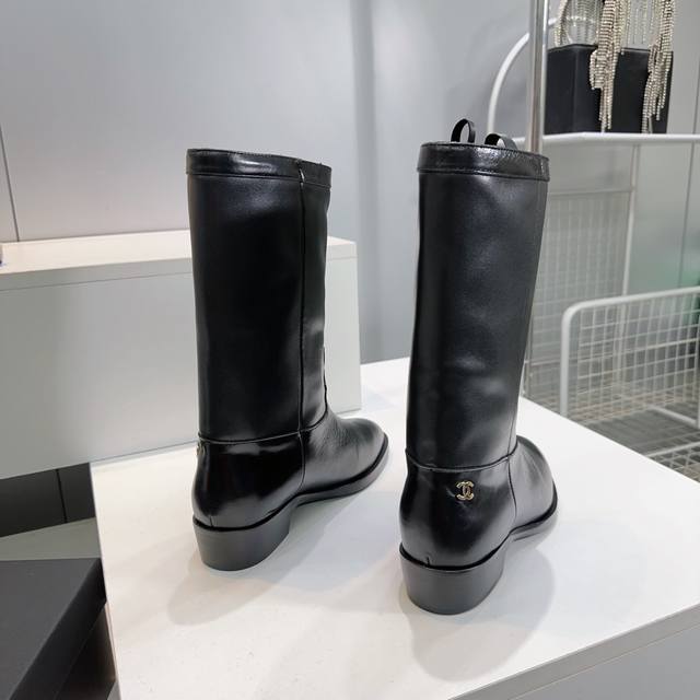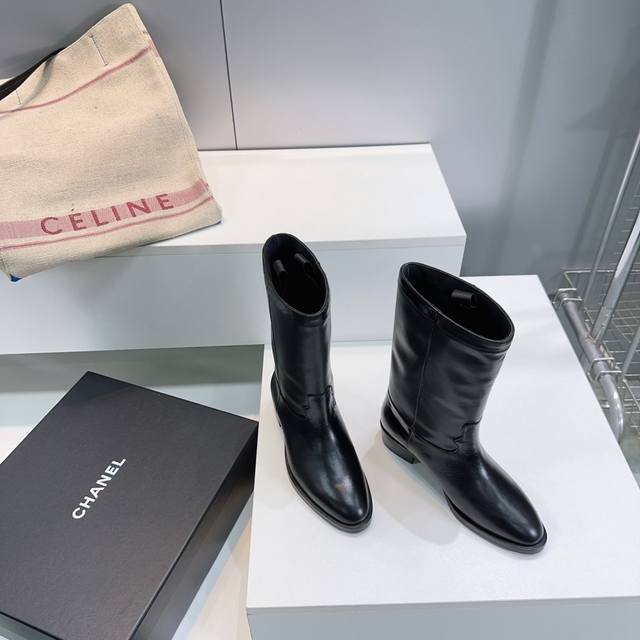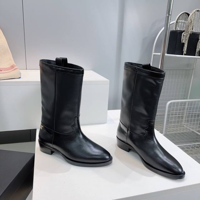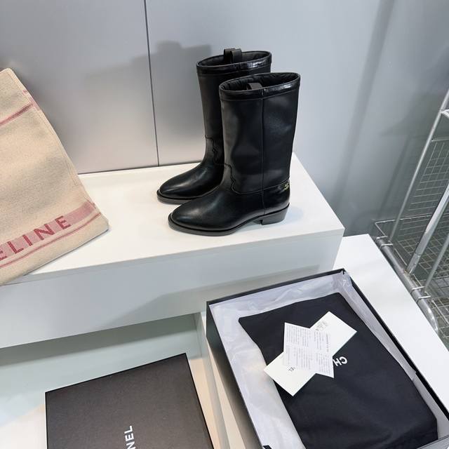 高品质出厂 !顶级品质Chanel 香奈儿25秋冬小香麂皮拼色一脚蹬骑士短靴中靴!复古风靴子西部牛仔短靴! 当小香的优雅邂逅西部风情,这几双靴子便是最好的诠释。皮革的坚韧与麂皮的柔软交织,勾勒出独特的轮廓,经典的元素碰撞! 独特的西部靴筒设计 流畅的曲线,不规则的边缘如同旷野中的自由线条!带着随性洒脱的味道。让每一步都踏出不羁与精致! 无论是搭配干练的西装裤 打造都市酷飒风 还是与飘逸的连衣裙相配 碰撞出刚柔并济的美感。亦或是配上牛仔裤 演绎原汁原味的西部风情! 鞋面采用头层牛皮拼接羊麂皮 内里垫脚水染牛
