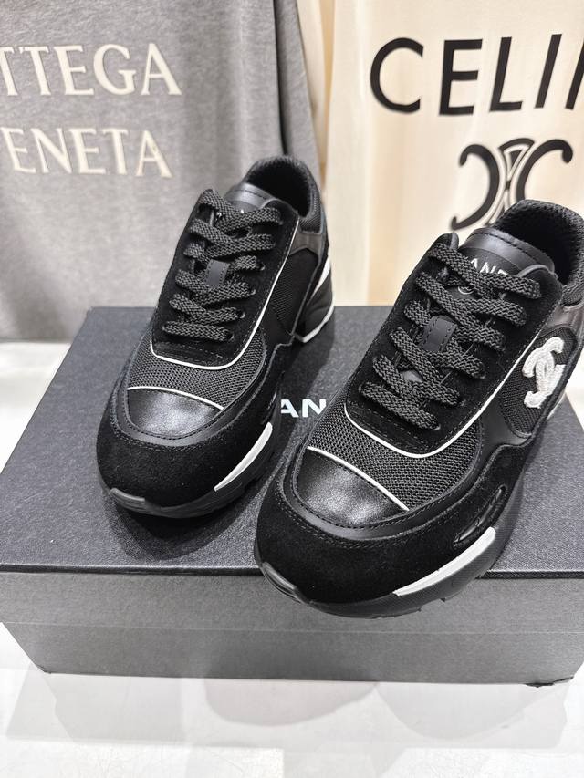 高版本出厂 Chane*香奈儿F015 小香 2025Ss新款系带熊猫鞋休闲鞋小白鞋运动鞋 饼干鞋 顶级版本~原版开发楦型 秀气有型 宽脚也不怕 不会显脚肥,上
