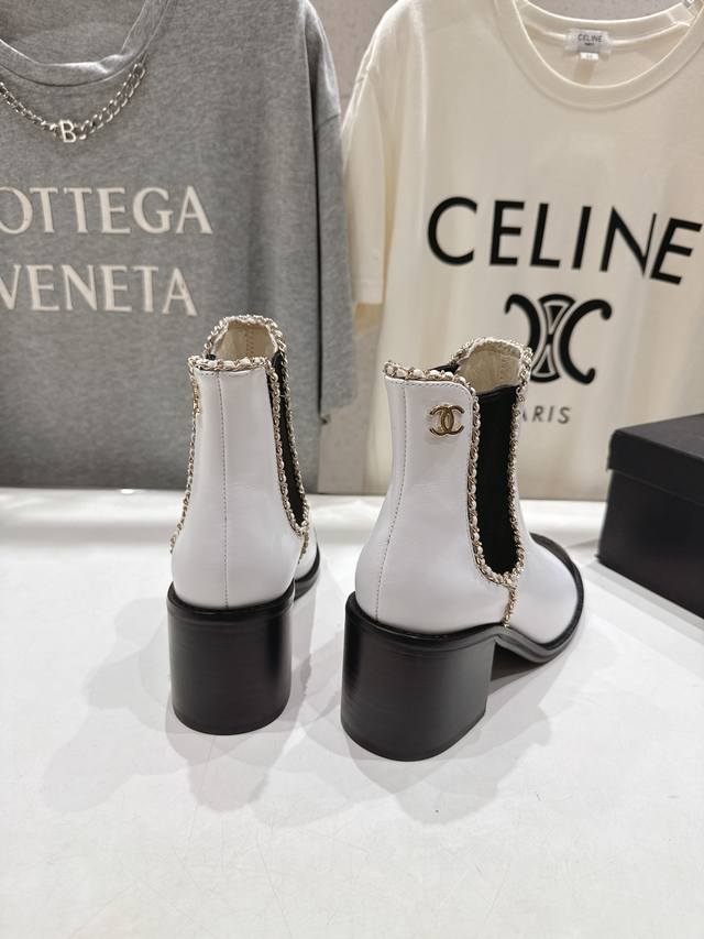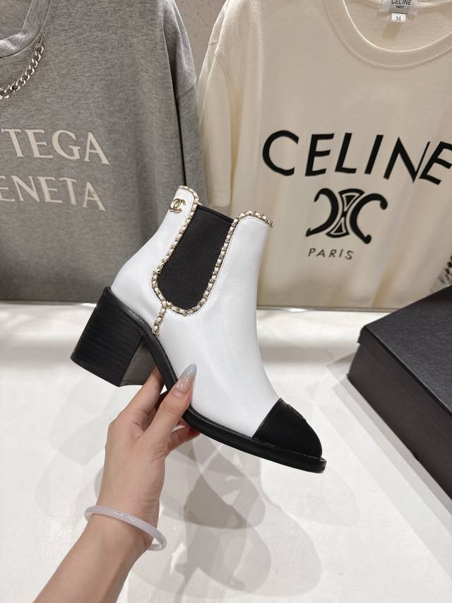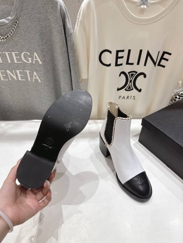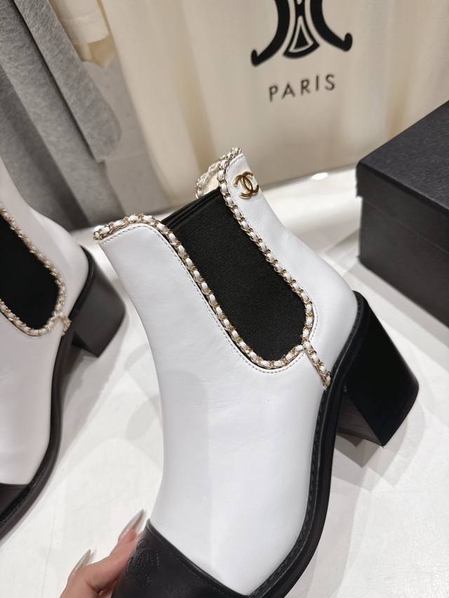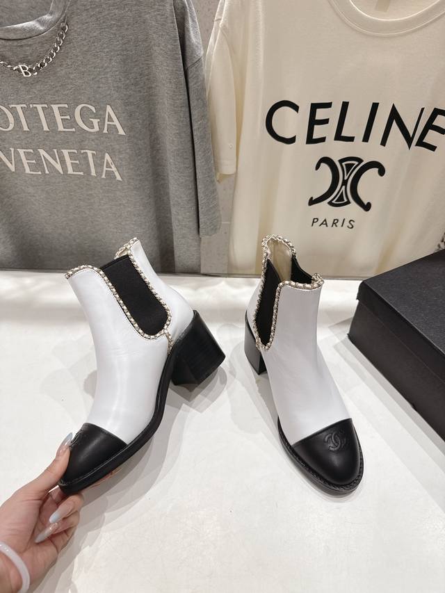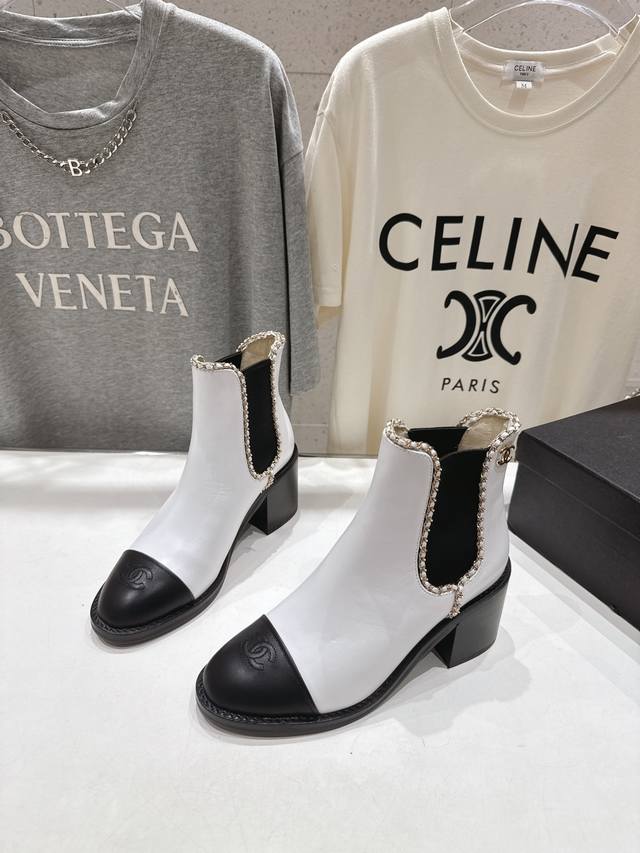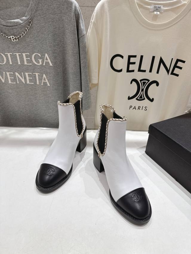 高版本出厂 Chanel*香奈儿F015 小香2025Ss秋冬切尔西高跟短靴及裸靴 一双可以穿N年你都不想丢弃的靴子 非常秀气的原版楦型,超时尚百搭,经典侧面松紧设计穿脱方便! 鞋面:进口小牛皮 内里:羊皮 垫脚:羊皮 跟高:6Cm 大底:意大利进口真皮大底 码数:35-39 40定做