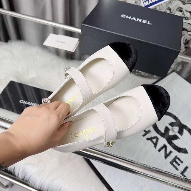 代购级 官网同步盒包装 Chanel小香 25Ss 春夏鞋头电绣双C Logo点缀,玛丽珍 粗跟单鞋...