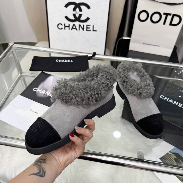 高版本香奈儿Chanel,小香2025款秋冬专柜最新款短靴,本季秋冬季节必备单品!!香奈儿女士钟爱简约又难以抗拒系 搭配展现与众不同的穿搭风格、自由混搭闪耀到位跟紧香奶奶时尚步伐!!!顶级工艺质感完美呈现,无论任何细节均可对比专柜,最好级别的顶级货,随意进出专柜!! 面料:进口牛皮 牛反绒皮 羊毛 内里:羊皮里 垫脚:羊皮 大底:原版开模底 跟高:3厘米 码数:35-40 40 41为定制不退换