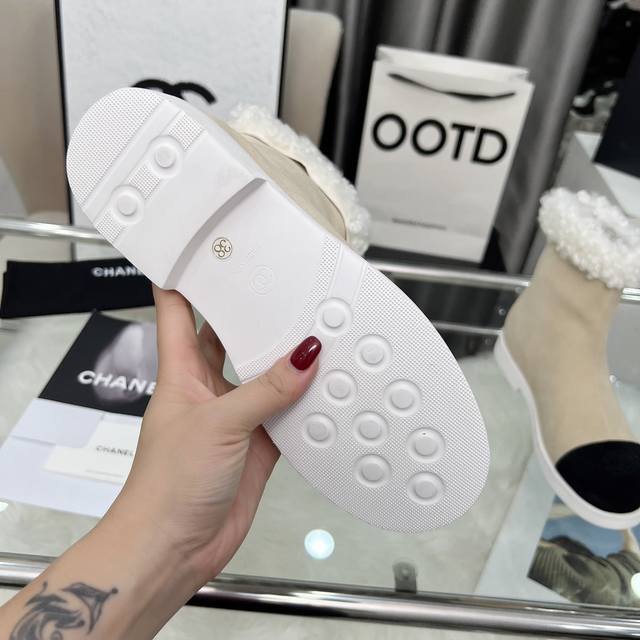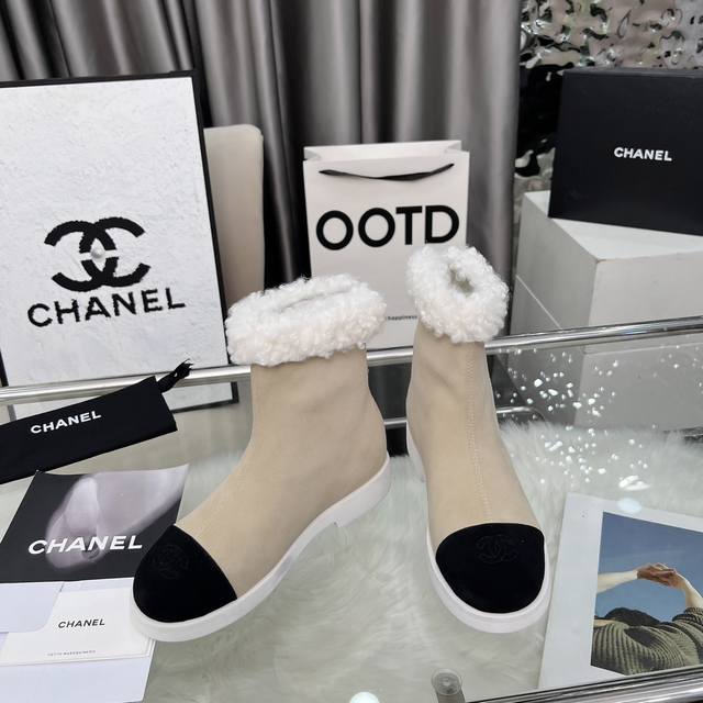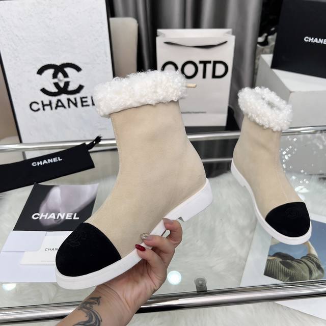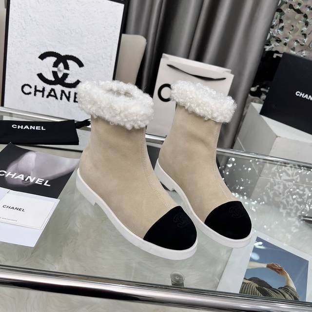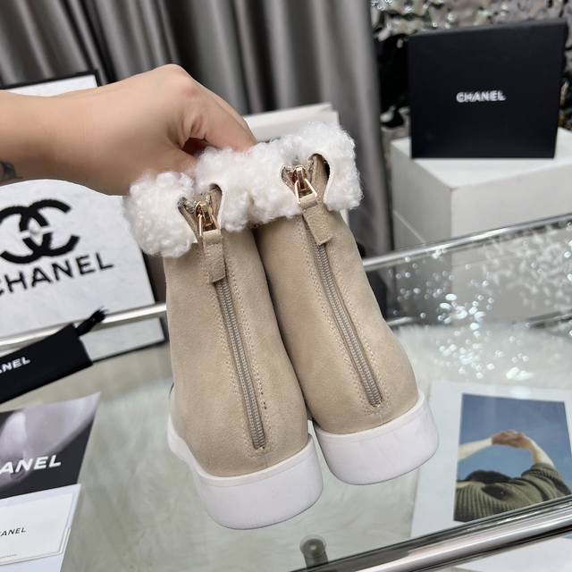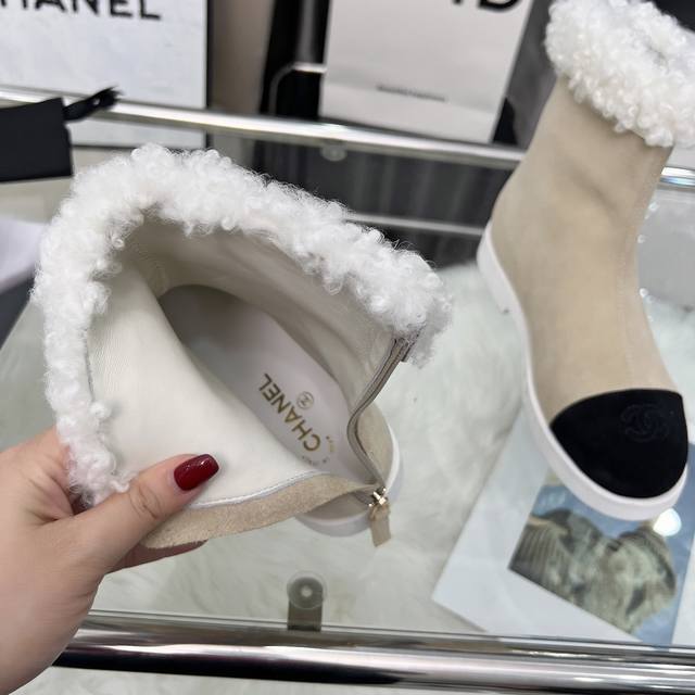 高版本香奈儿Chanel,小香2025款秋冬专柜最新款短靴,本季秋冬季节必备单品!!香奈儿女士钟爱简约又难以抗拒系 搭配展现与众不同的穿搭风格、自由混搭闪耀到位跟紧香奶奶时尚步伐!!!顶级工艺质感完美呈现,无论任何细节均可对比专柜,最好级别的顶级货,随意进出专柜!! 面料:进口牛皮 牛反绒皮 羊毛 内里:羊皮里 垫脚:羊皮 大底:原版开模底 跟高:3厘米 靴筒高度:总高6寸 码数:35-40 40 41为定制不退换